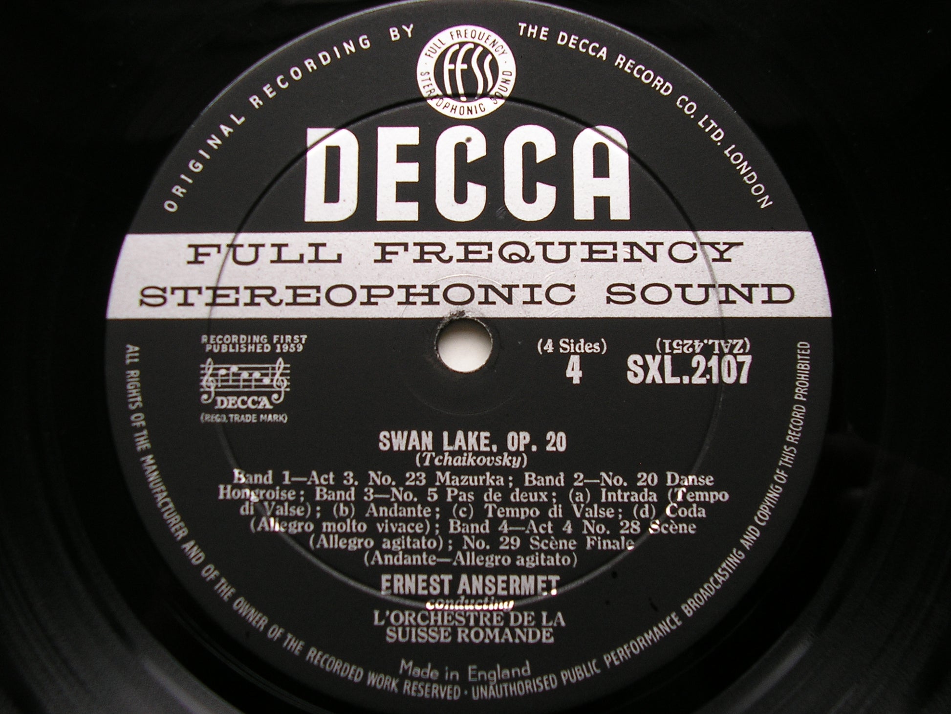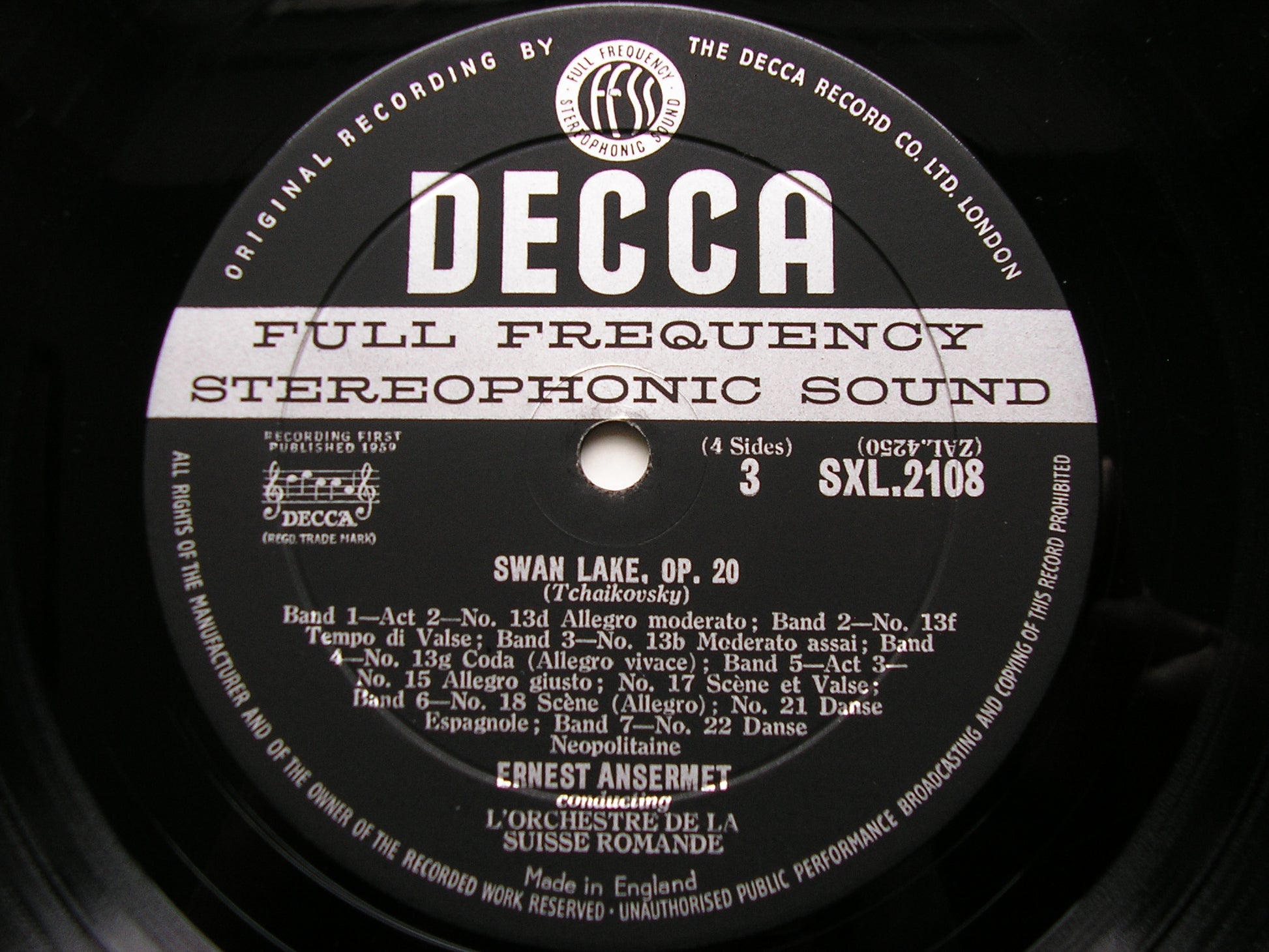 SXL 2107 - 8  TCHAIKOVSKY: SWAN LAKE    ERNEST ANSERMET / SUISSE ROMANDE ORCHESTRA