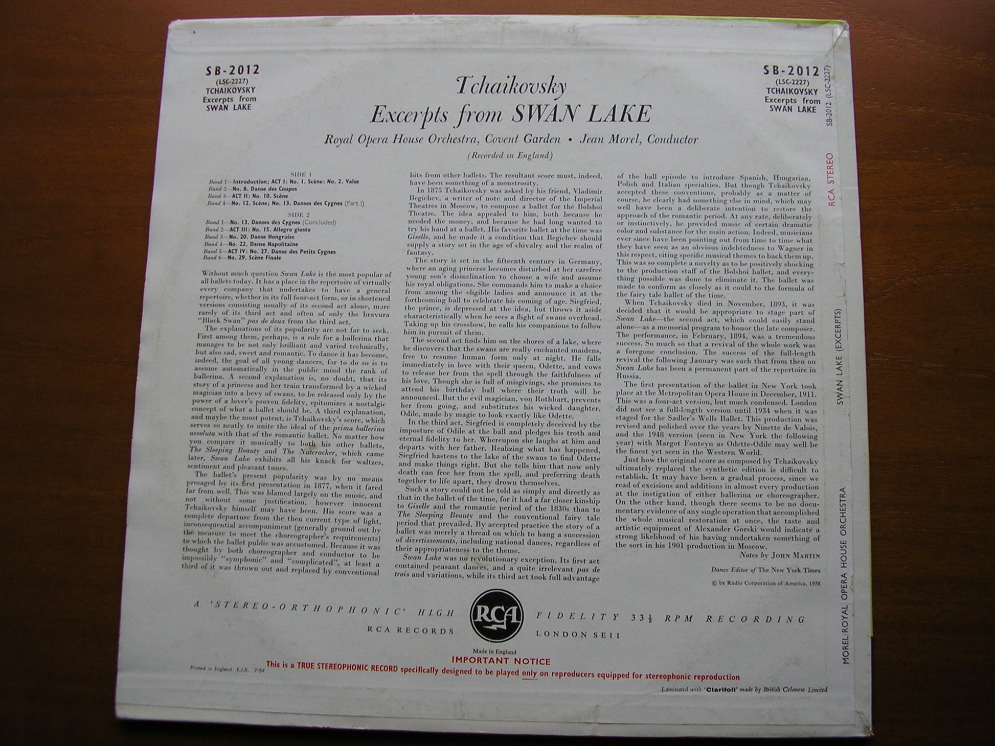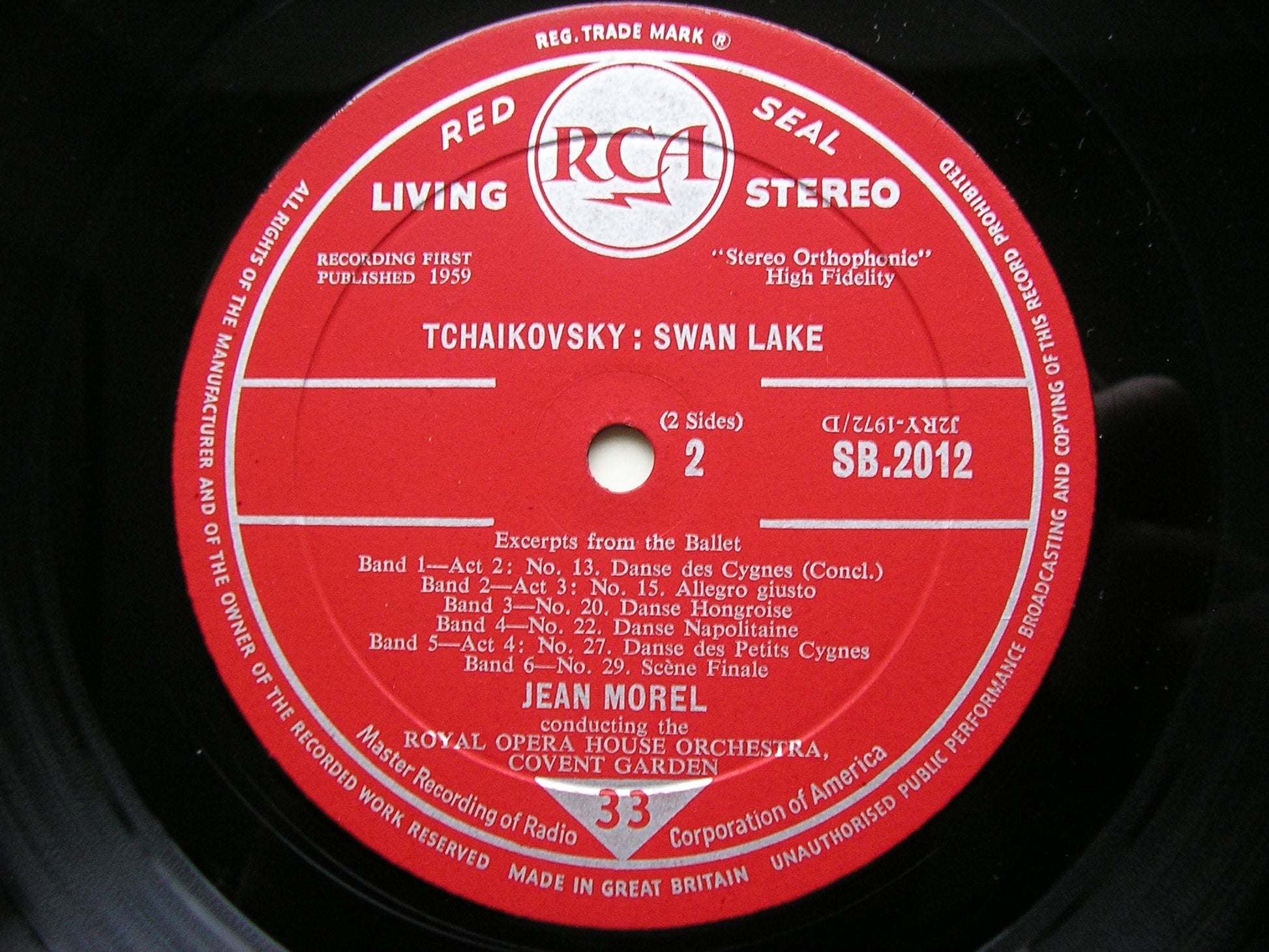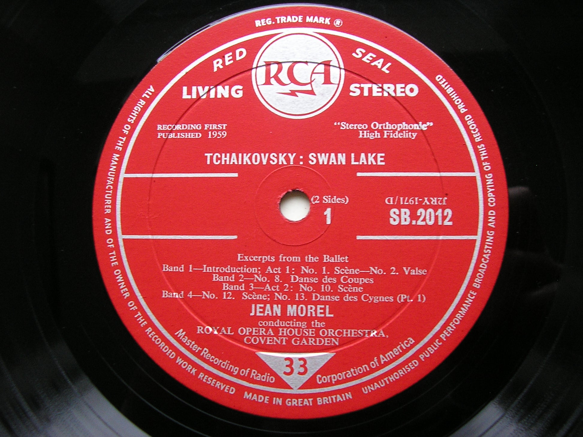 SB 2012  TCHAIKOVSKY: SWAN LAKE Excerpts     JEAN MOREL / OTCHESTRA OF THE ROYAL OPERA HOUSE COVENT GARDEN
