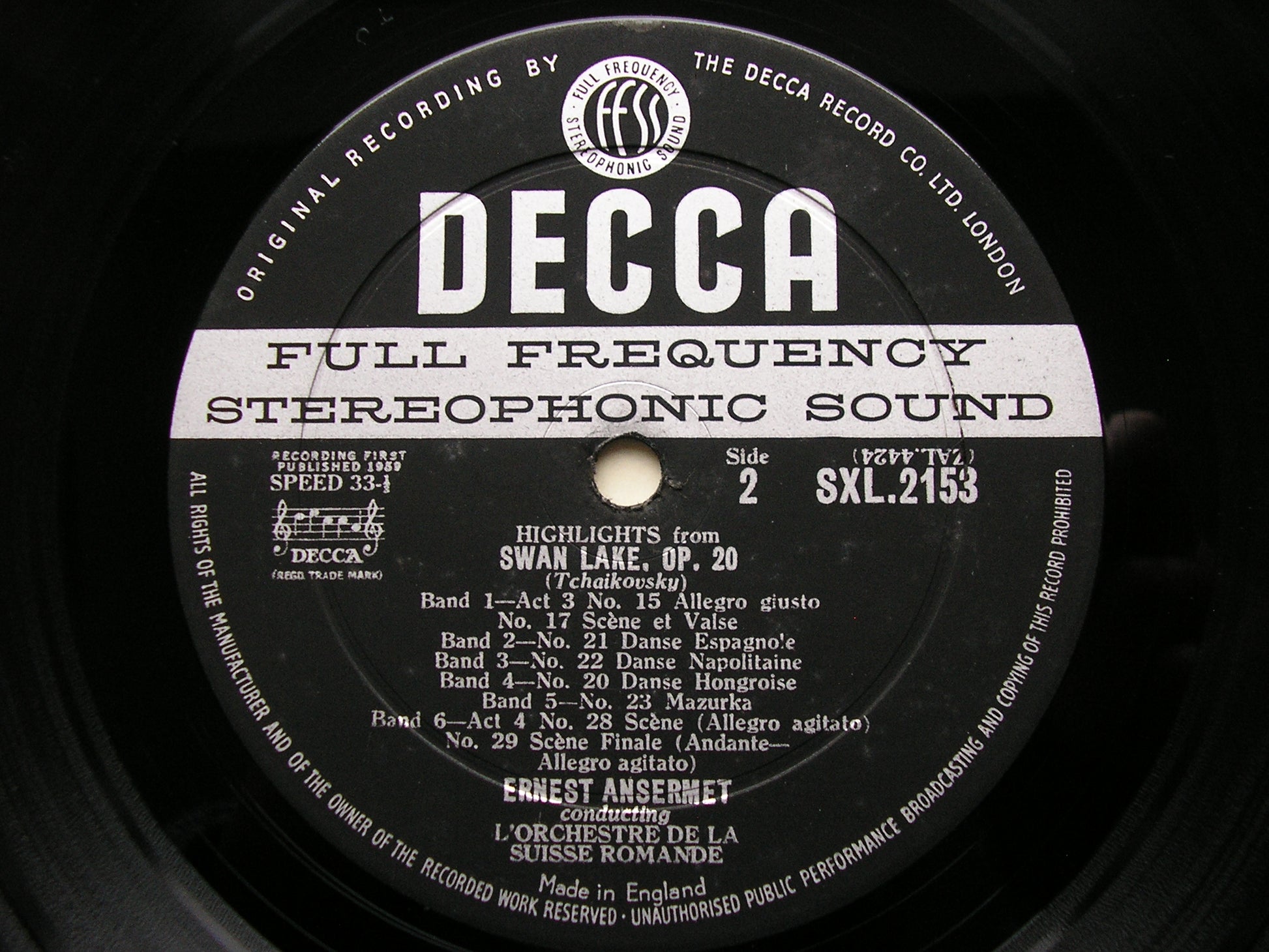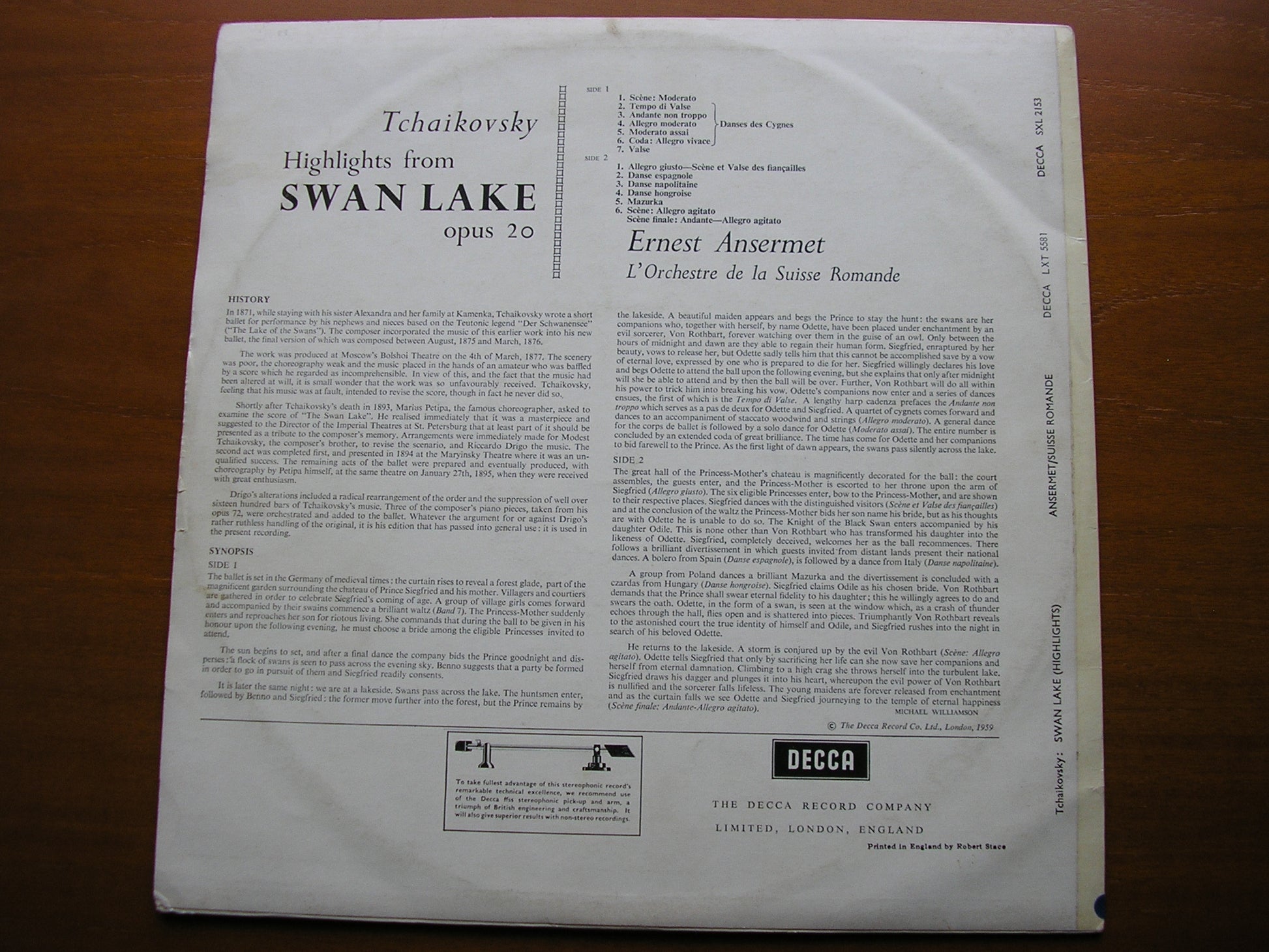 SXL 2153  TCHAIKOVSKY: SWAN LAKE highlights   ERNEST ANSERMET / SUISSE ROMANDE ORCHESTRA