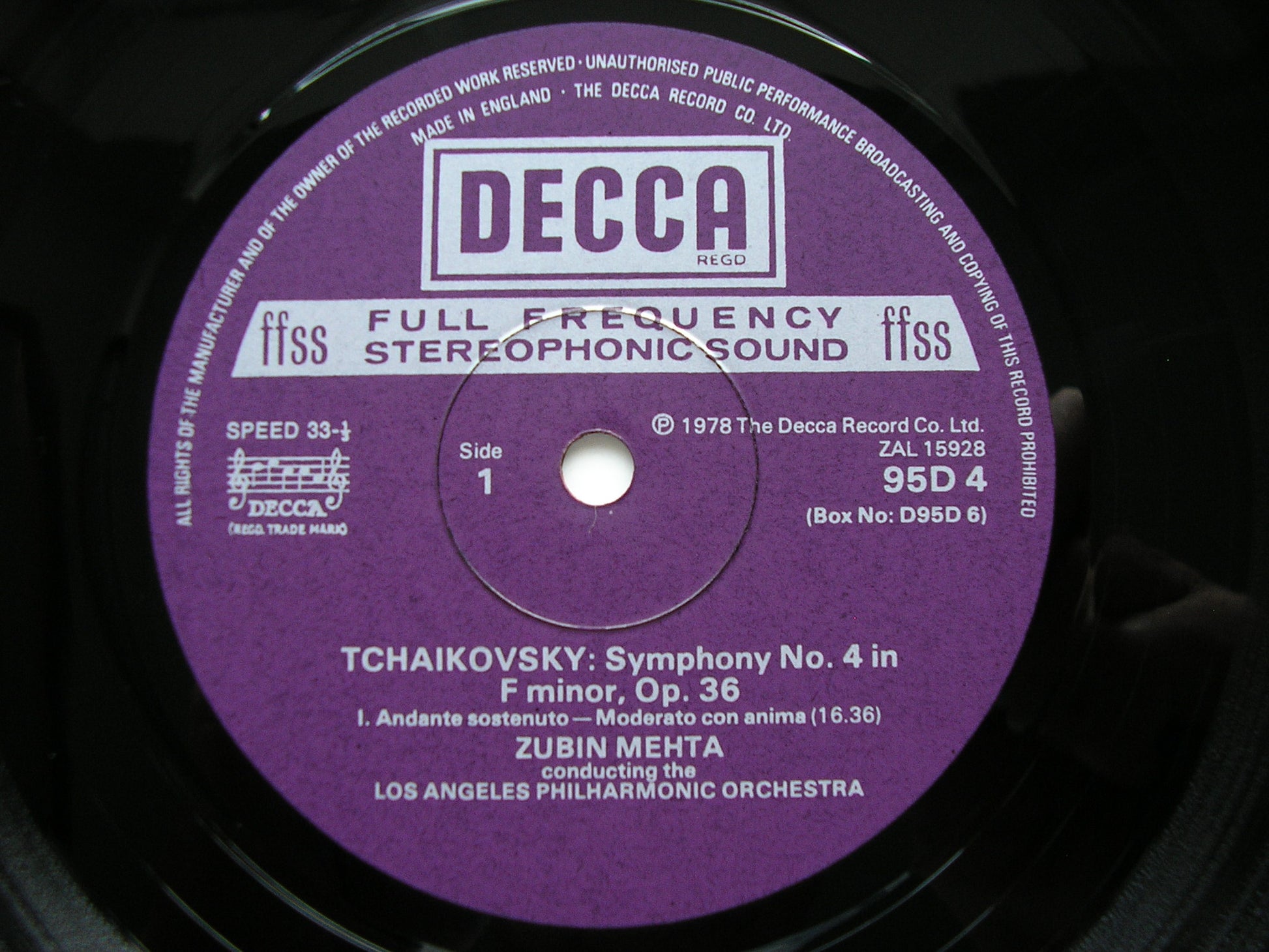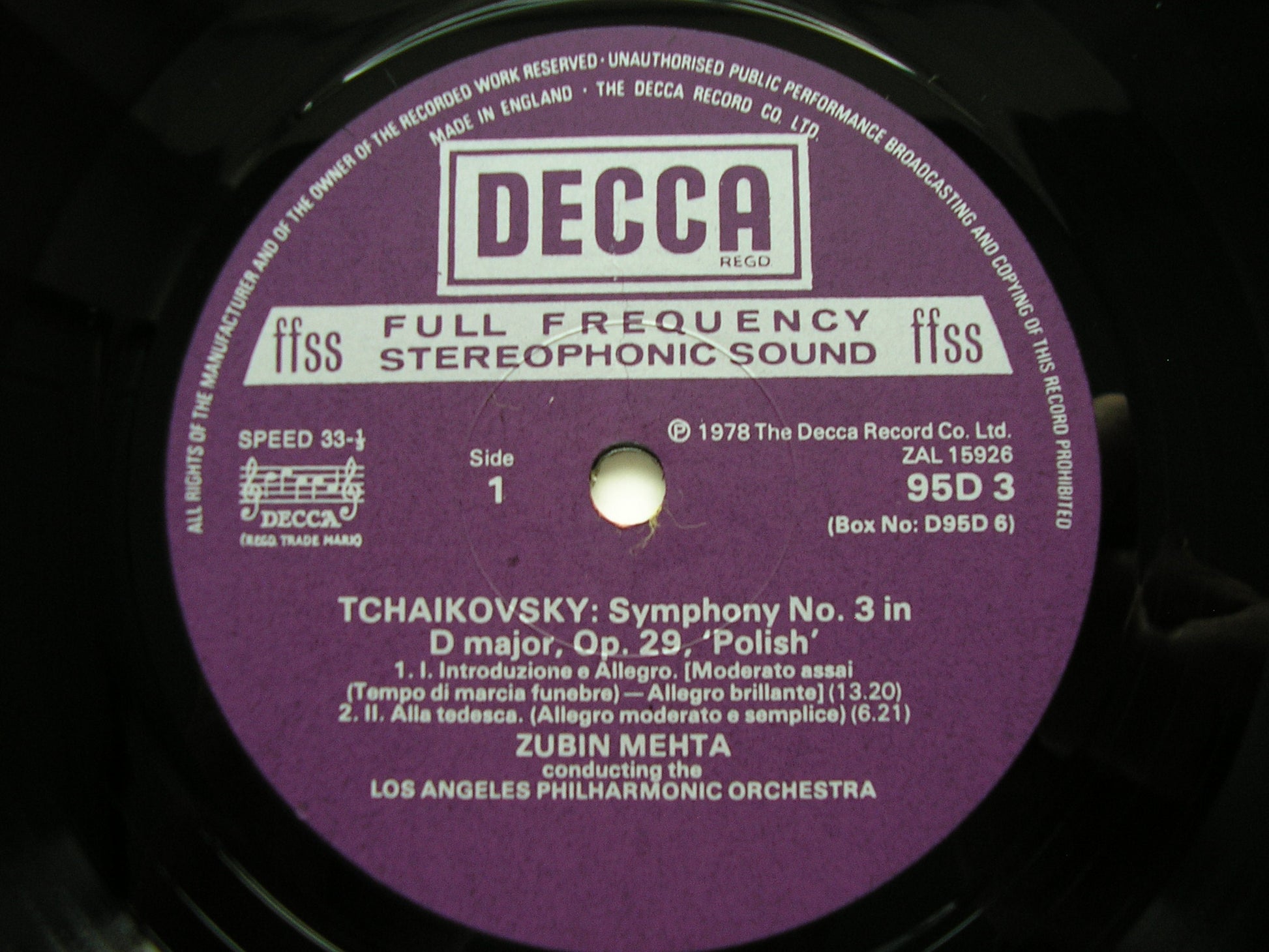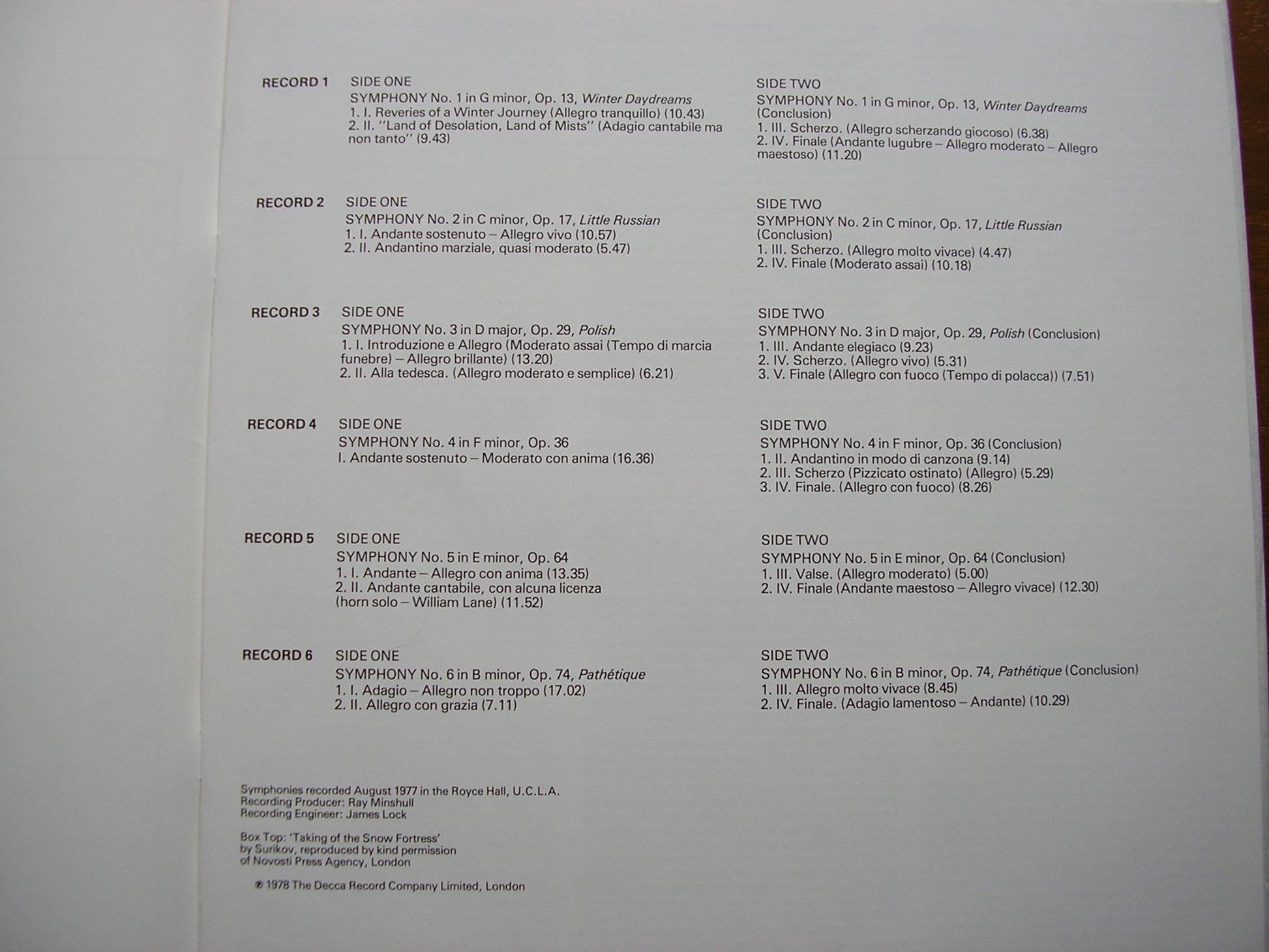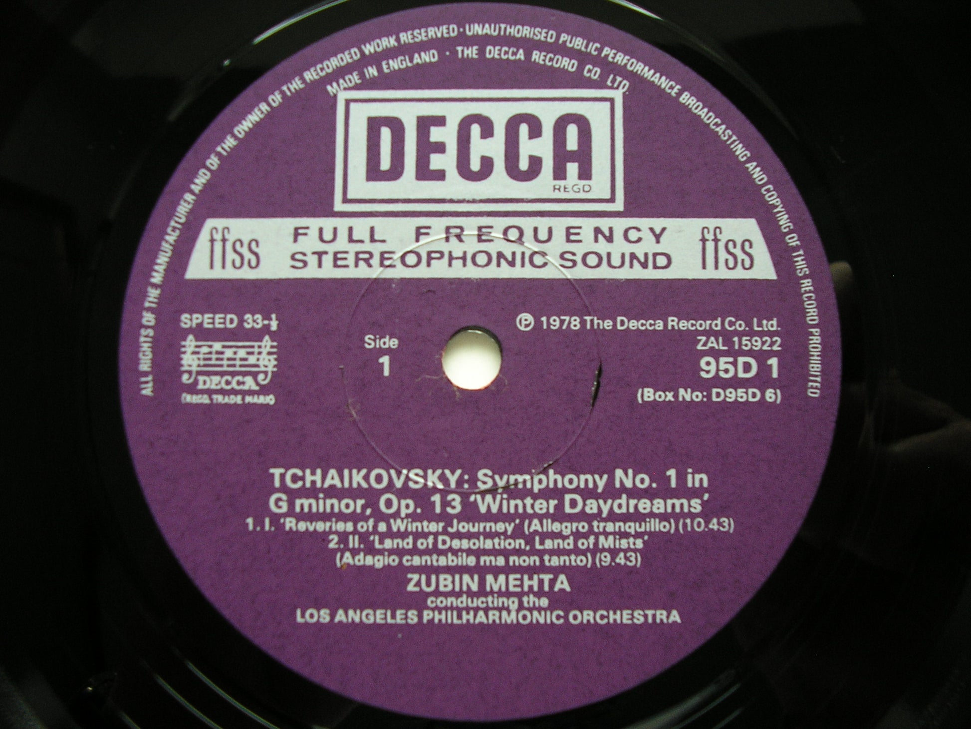 D95D6  TCHAIKOVSKY: SYMPHONIES Nos. 1 - 6    ZUBIN MEHTA / LOS ANGELES PHILHARMONIC ORCHESTRA