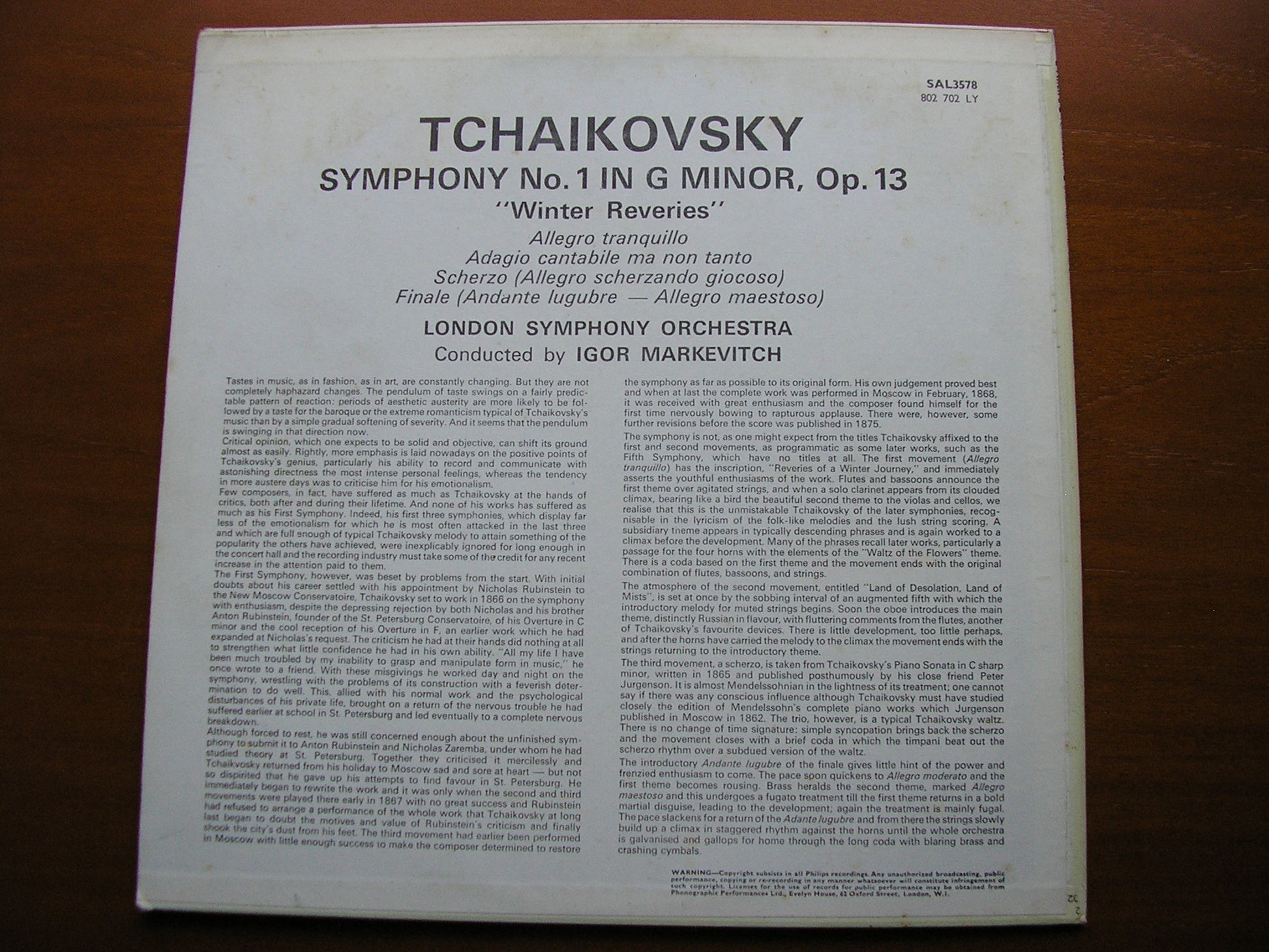 SAL 3578  TCHAIKOVSKY: SYMPHONY No. 1     IGOR MARKEVITCH / LONDON SYMPHONY ORCHESTRA