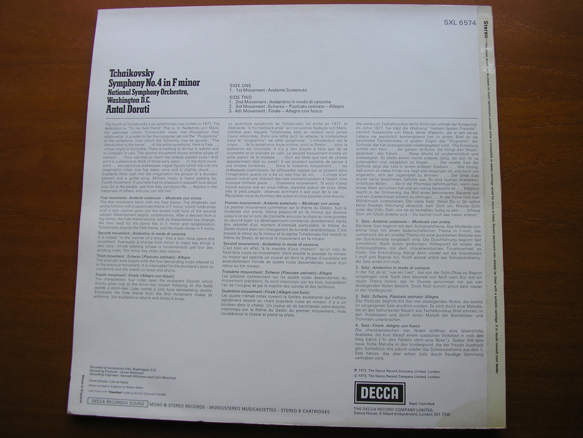 SXL 6574  TCHAIKOVSKY: SYMPHONY No. 4   ANTAL DORATI / NATIONAL SYMPHONY ORCHESTRA ASHINGTON DC