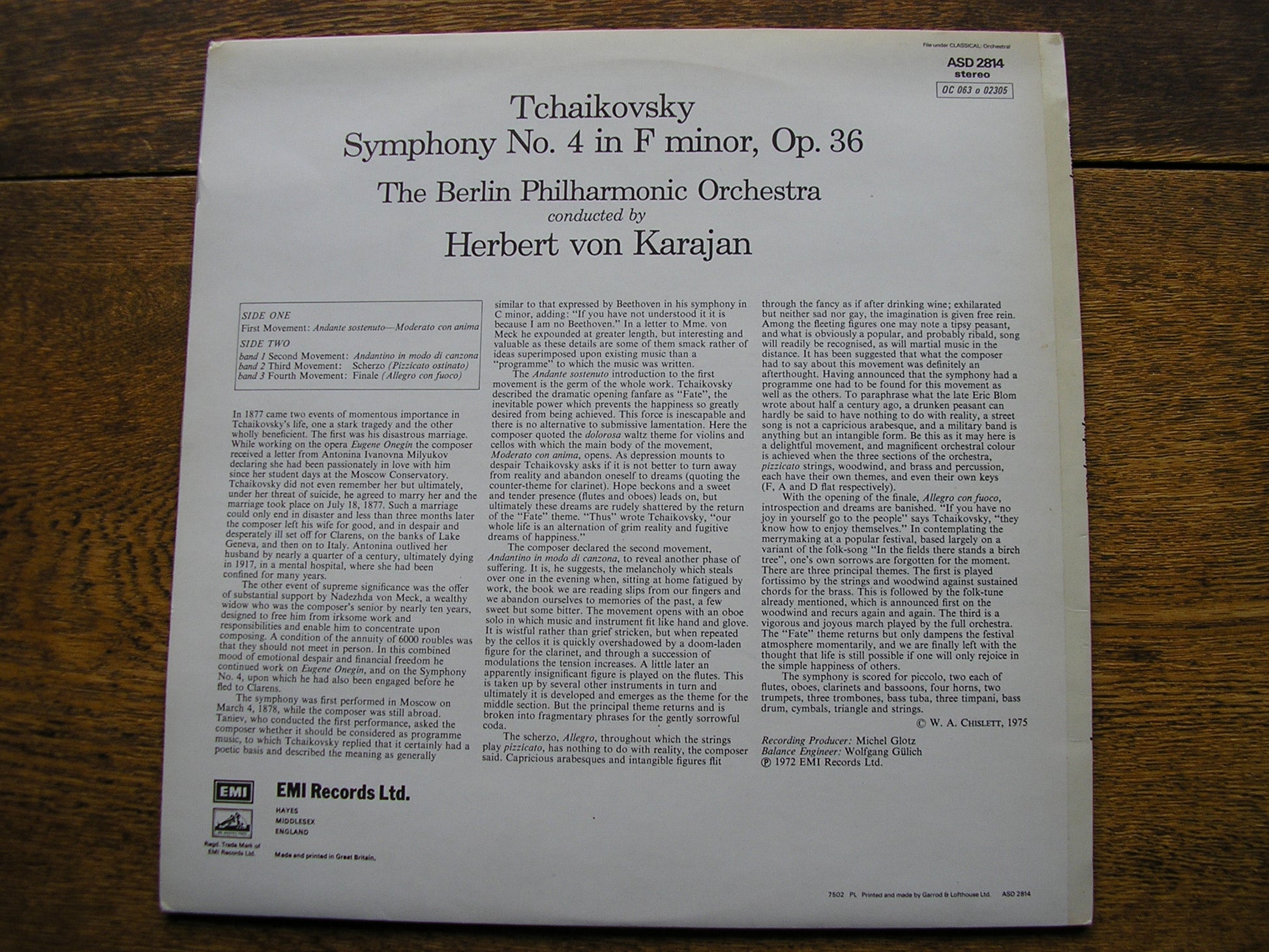 ASD 2814  TCHAIKOVSKY: SYMPHONY No. 4  HERBERT VON KARAJAN / BERLIN PHILHARMONIC ORCHESTRA