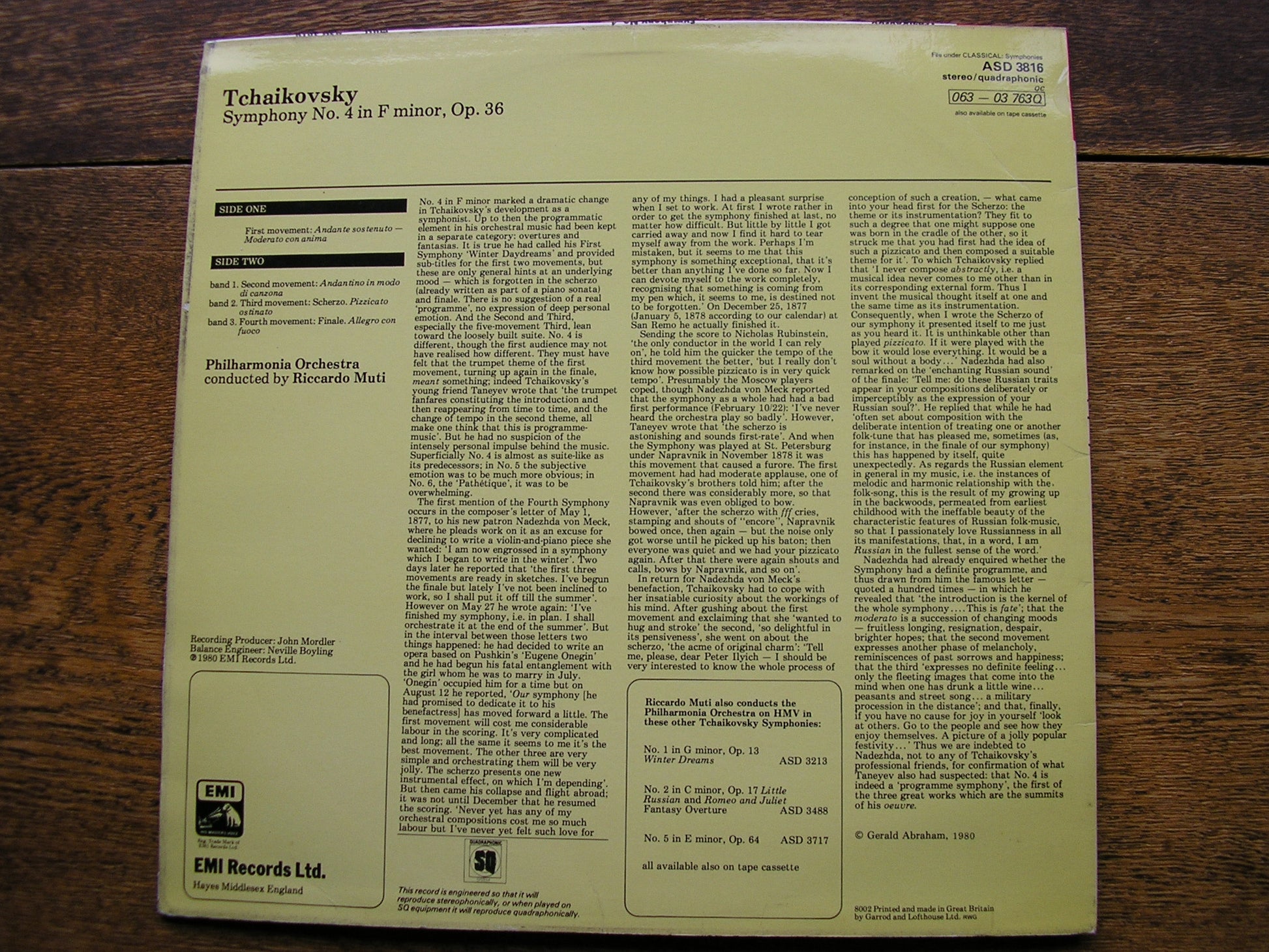 TCHAIKOVSKY: SYMPHONY No. 4 MUTI / PHILHARMONIA ORCHESTRA ASD 3816