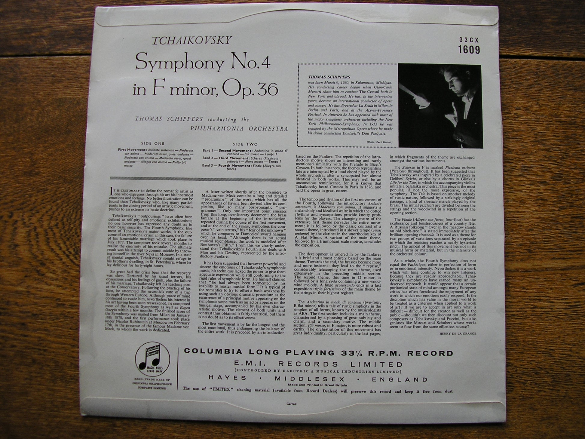 TCHAIKOVSKY: SYMPHONY No. 4 SCHIPPERS / PHILHARMONIA 33CX 1609