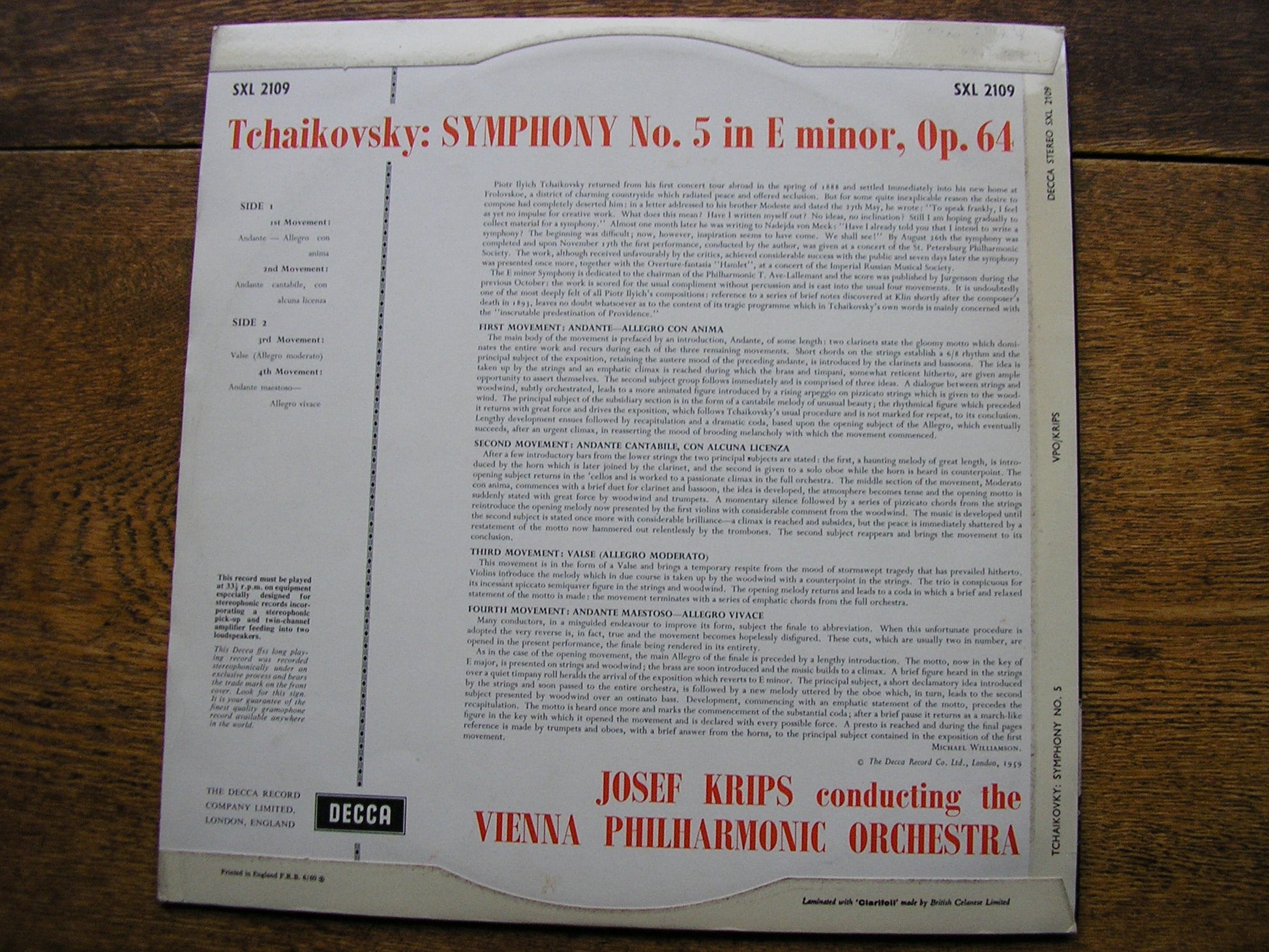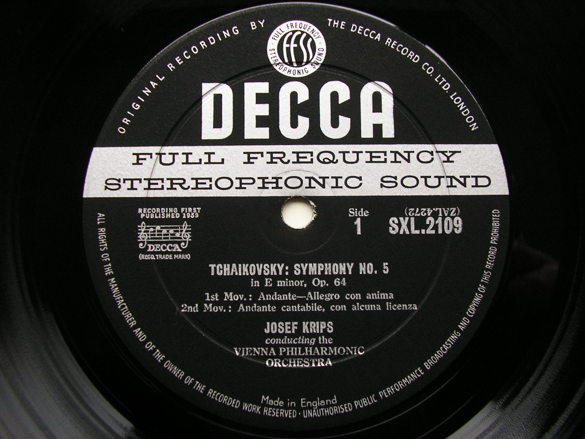 SXL 2109  TCHAIKOVSKY: SYMPHONY No. 5   JOSEF KRIPS / VIENNA PHILHARMONIC ORCHESTRA