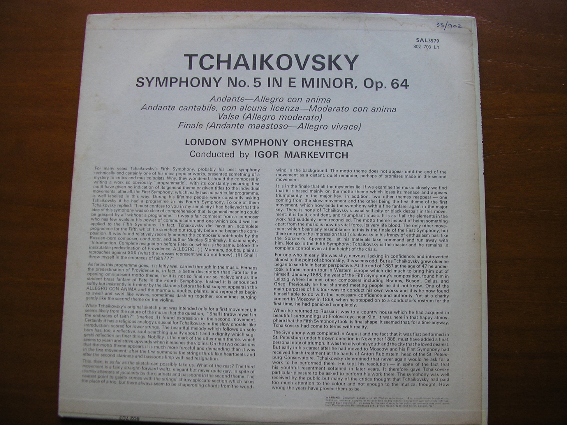 SAL 3579  TCHAIKOVSKY: SYMPHONY No. 5     IGOR MARKEVITCH / LONDON SYMPHONY ORCHESTRA