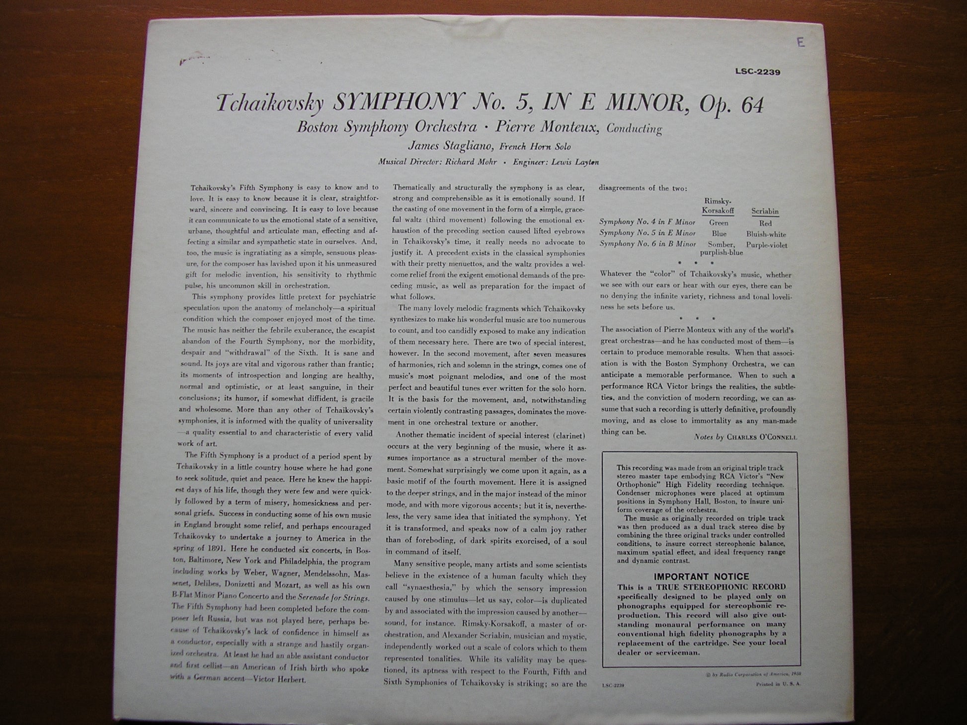 LSC 2239  TCHAIKOVSKY: SYMPHONY No. 5    PIERRE MONTEUX / BOSTON SYMPHONY ORCHESTRA