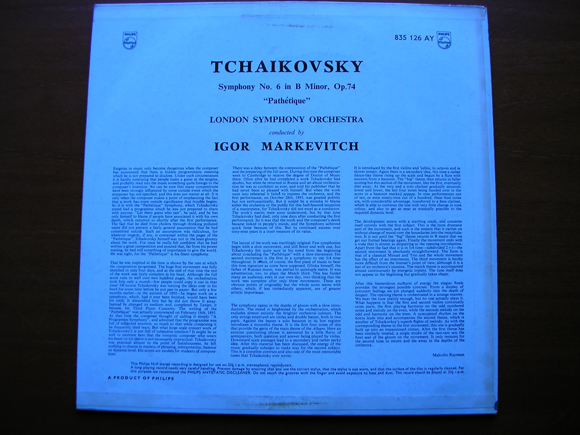TCHAIKOVSKY: SYMPHONY No. 6 MARKEVITCH / LONDON SYMPHONY 835 126 AY
