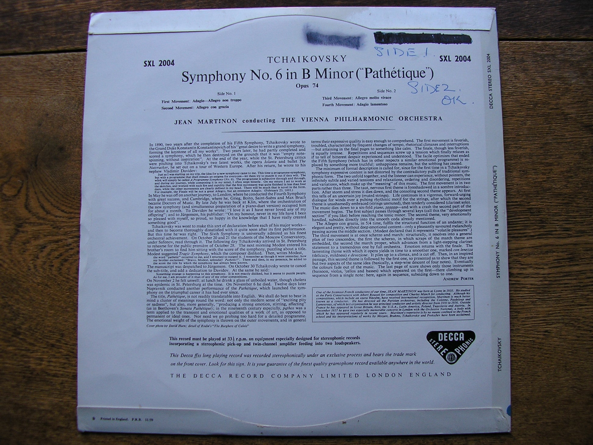 SXL 2004  TCHAIKOVSKY: SYMPHONY No. 6 'Pathetique'  JEAN  MARTINON / VIENNA PHILHARMONIC ORCHESTRA