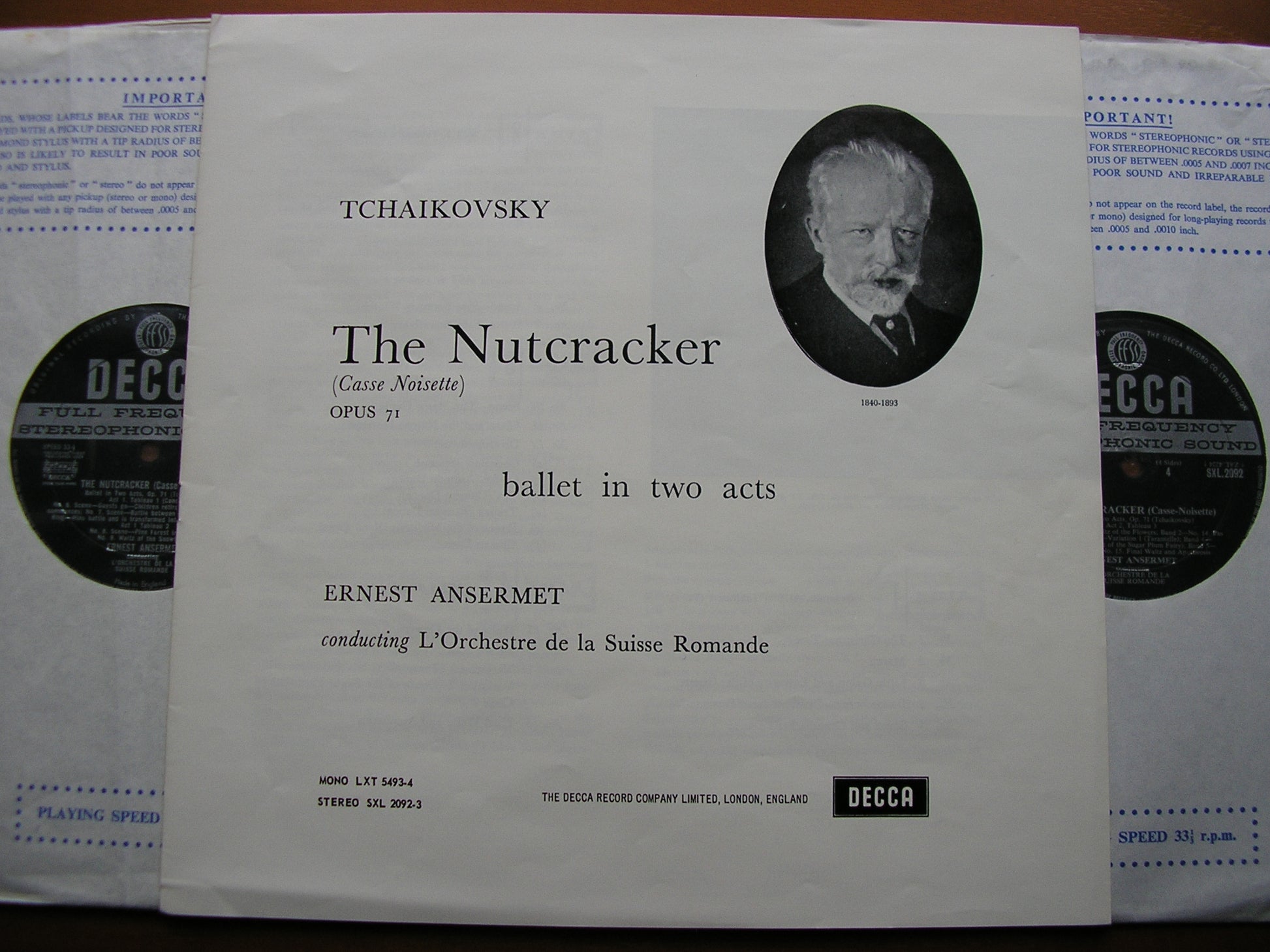 SXL 2092 - 3  TCHAIKOVSKY: THE NUTCRACKER complete ballet     ERNEST ANSERMET / SUISSE ROMANDE ORCHESTRA