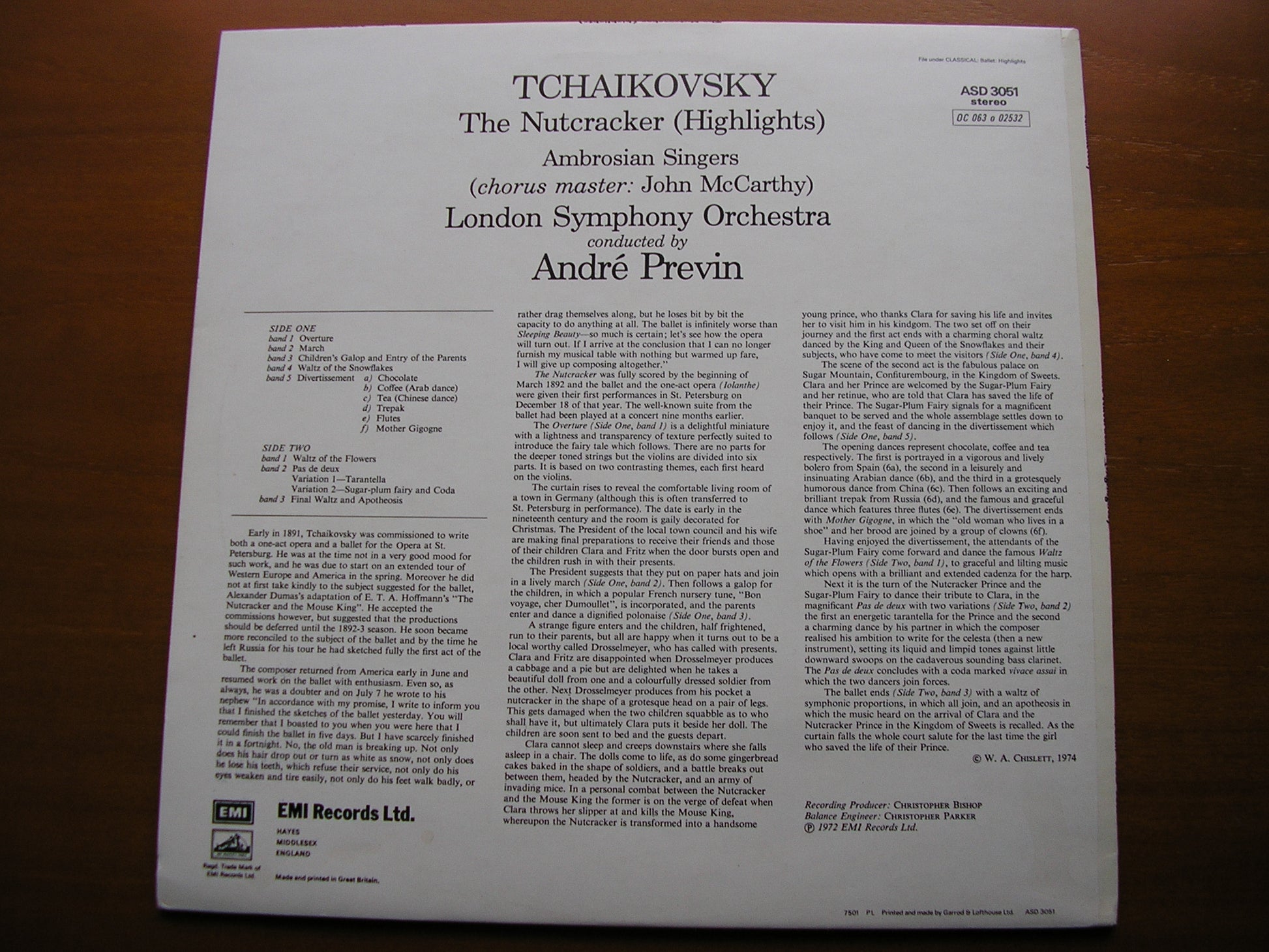 TCHAIKOVSKY: THE NUTCRACKER Highlights PREVIN / LONDON SYMPHONY ASD 3051