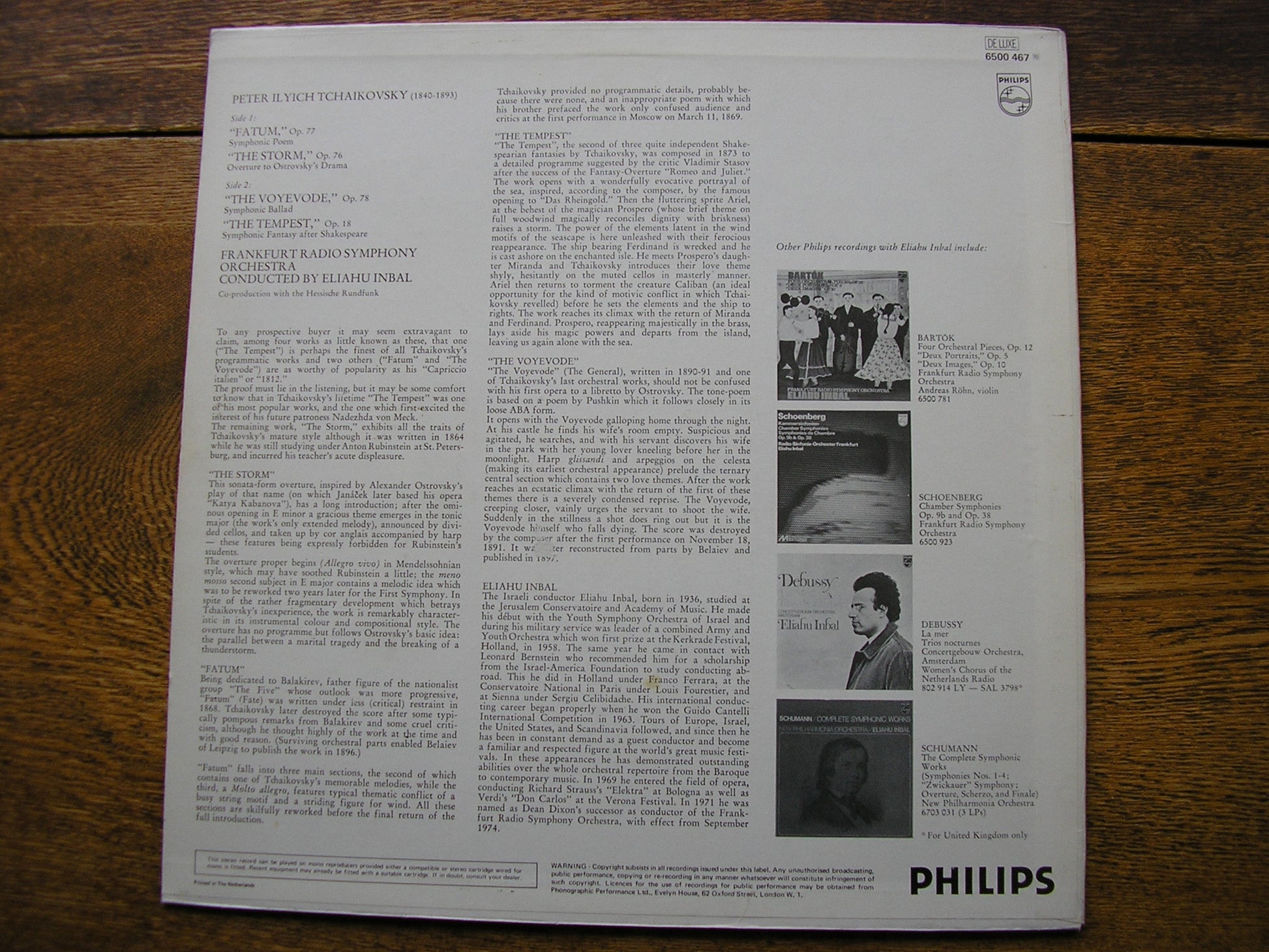 6500 467  TCHAIKOVSKY: FATUM / THE STORM / THE VOYEVODE / THE TEMPEST   ELIAHU INBAL / FRANKFURT RADIO SYMPHONY ORCHESTRA