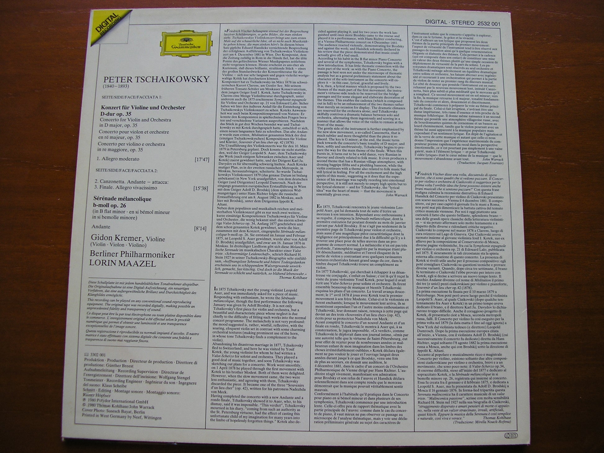 2532 001  TCHAIKOVSKY: VIOLIN CONCERTO / SERENADE MELANCOLIQUE  GIDON KREMER / BERLIN PHILHARMONIC ORCHESTRA / LORIN MAAZEL