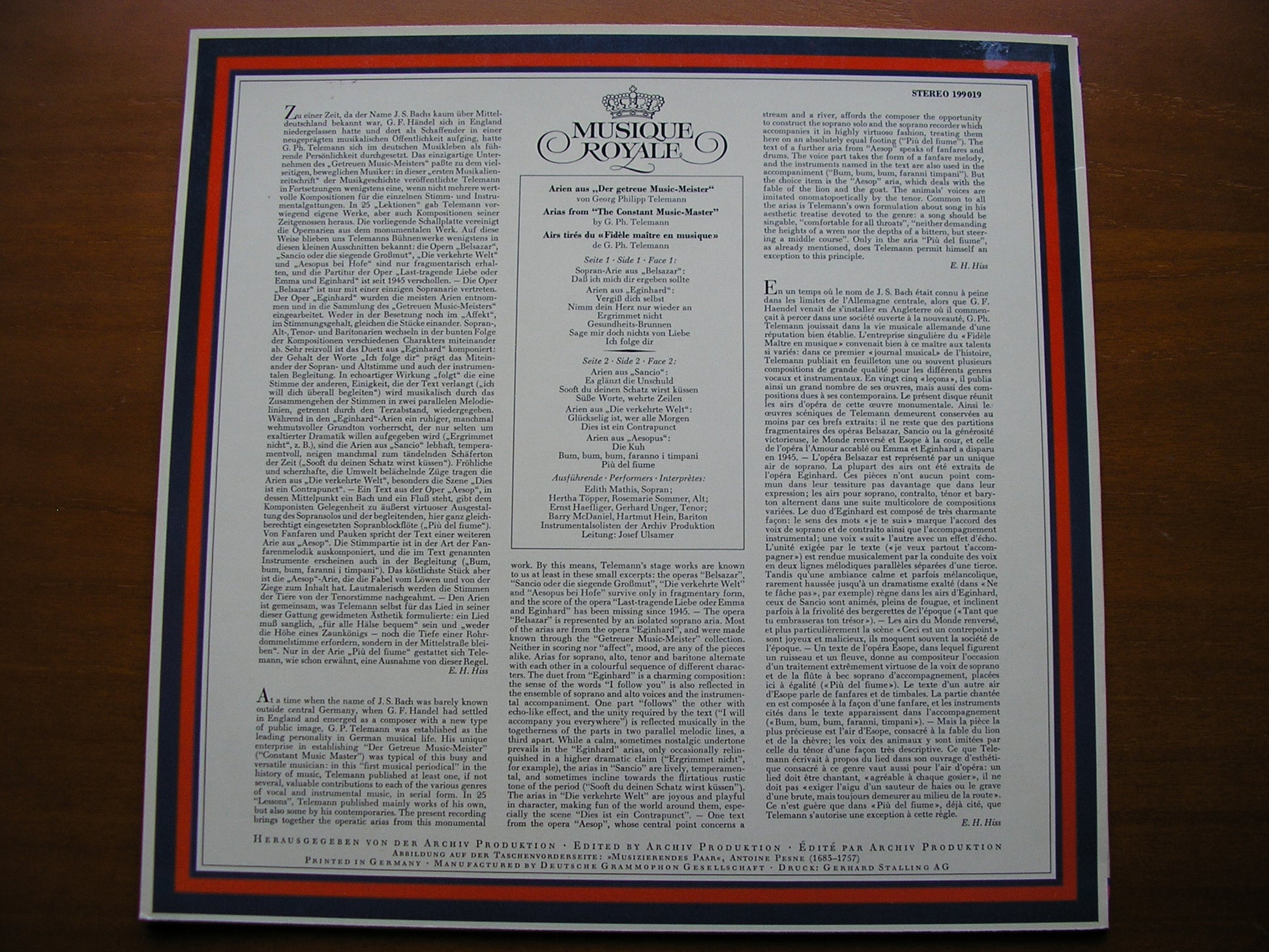 199019  TELEMANN: ARIAS from 'DER GETREUE MUSIC-MEISTER'     EDITH MATHIS / HERTHA HOPPER / ERNST HAEFLIGER / BARRY McDANIEL / ORCHESTRA / JOSEF ULSAMER