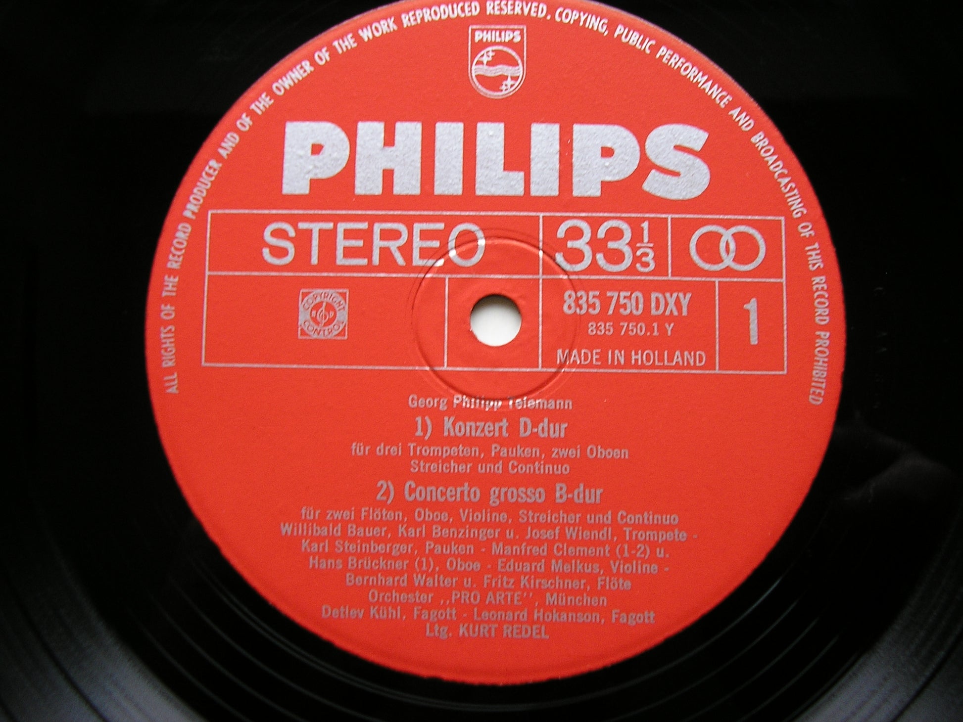 835 750  TELEMANN: CONCERTO FOR TWO TRUMPETS / OBOE D'AMORE & FLUTE / OBOE D'AMORE / CONCERTO GROSSO      KURT REDEL / PRO ARTE MUNICH