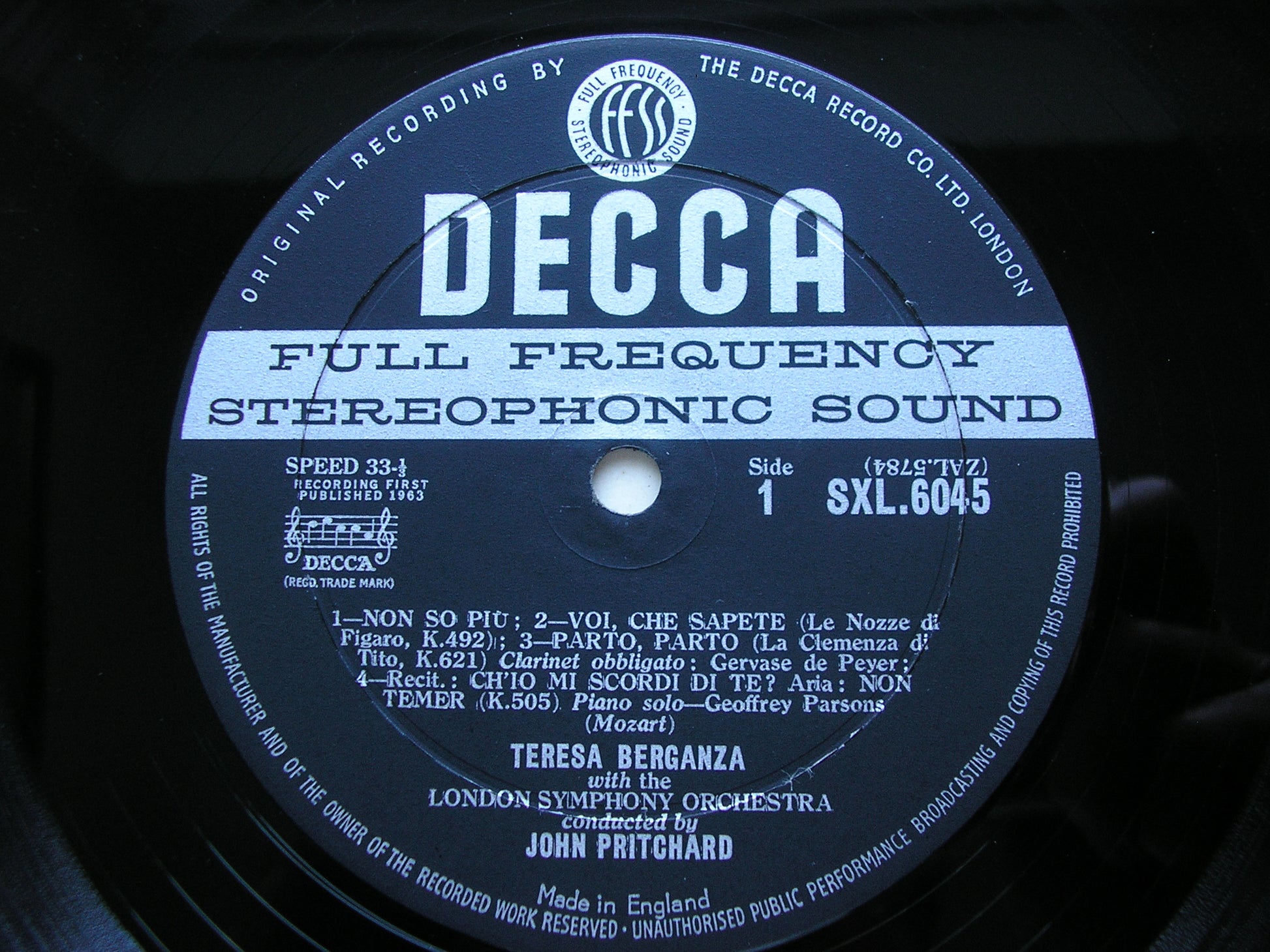 SXL 6045  MOZART ARIAS: COSI FAN TUTTE / LE NOZZE DI FIGARO / LA CLEMENZA DI TITO / CONCERT ARIA K505     TERESA BERGANZA / LONDON SYMPHONY ORCHESTRA / JOHN PRITCHARD