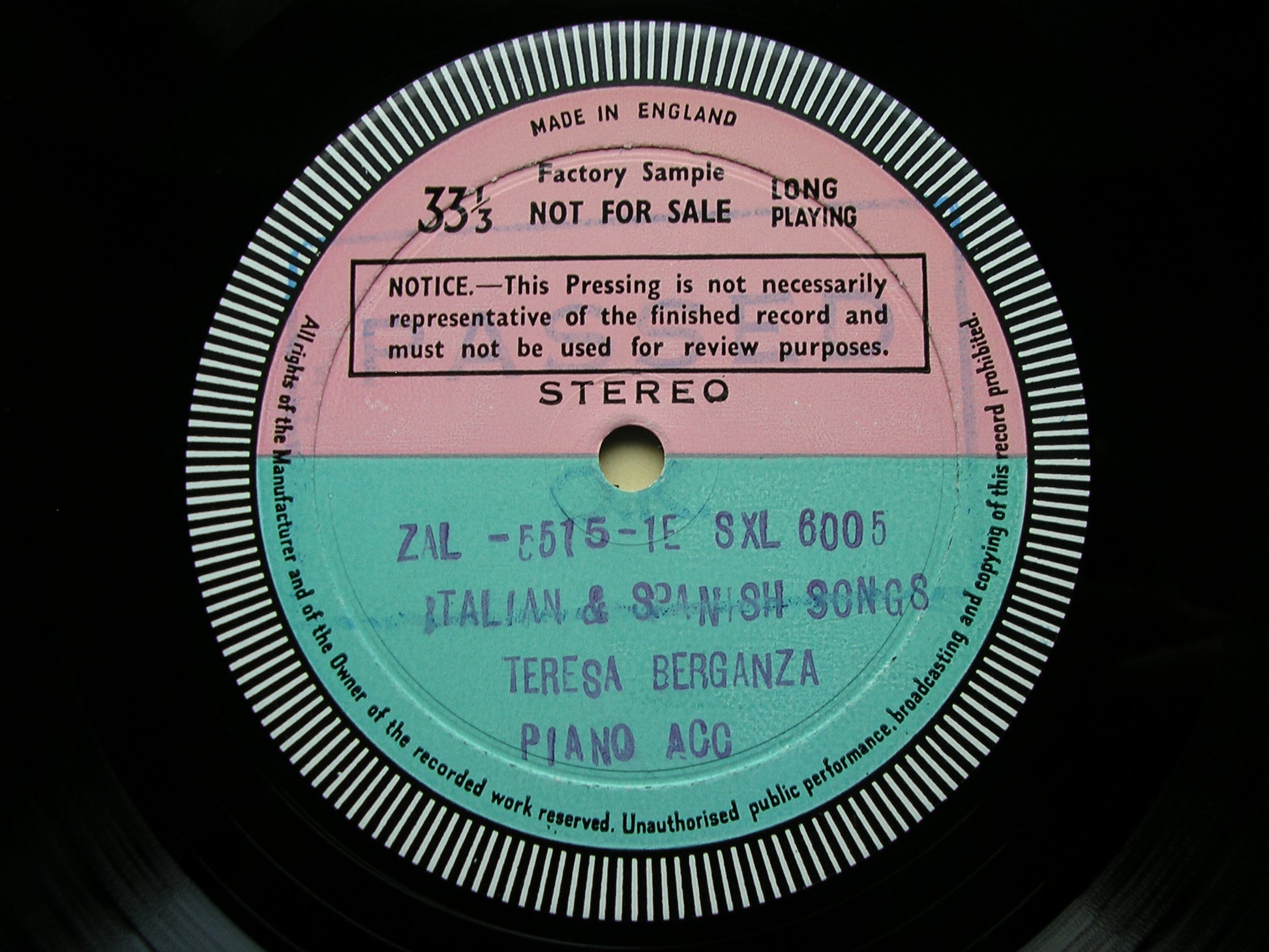 TERESA BERGANZA SINGS SPANISH & ITALIAN SONGS BERGANZA / LAVILLA test pressing SXL 6005