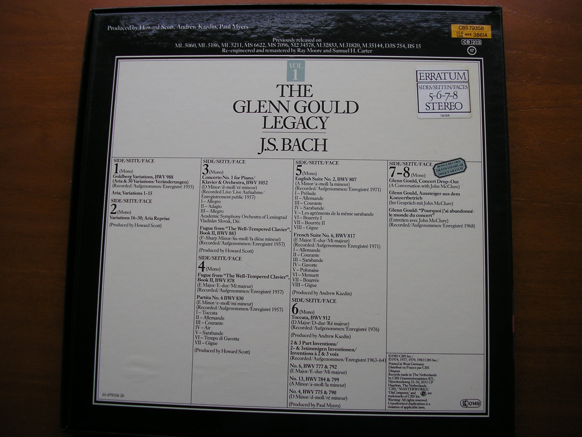 THE GLENN GOULD LEGACY: BACH Goldberg Variations / English Suite / French Suite / Concerto BWV 1052 GLENN GOULD 4 LP CBS 79358