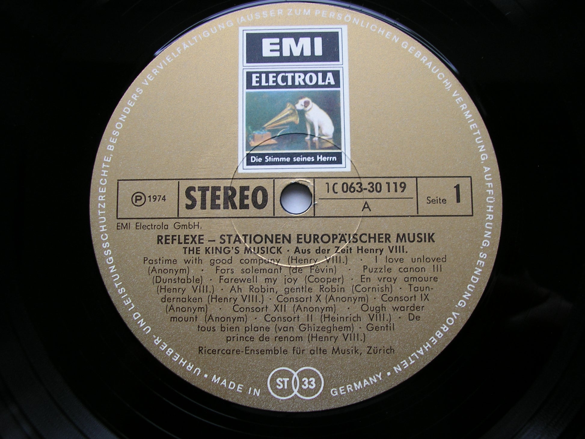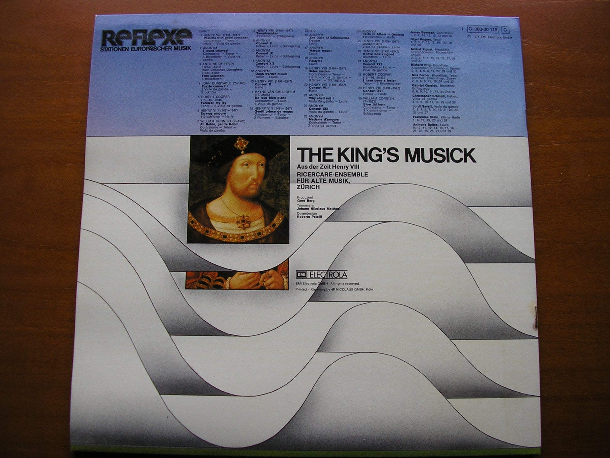 063 30 119  THE KING'S MUSICK: Dunstable / Cooper / Cornish / Henry VIII / Van Chighezem       NIGEL ROGERS / JAMES BOWMAN / RICERCARE ENSEMBLE ZURICH