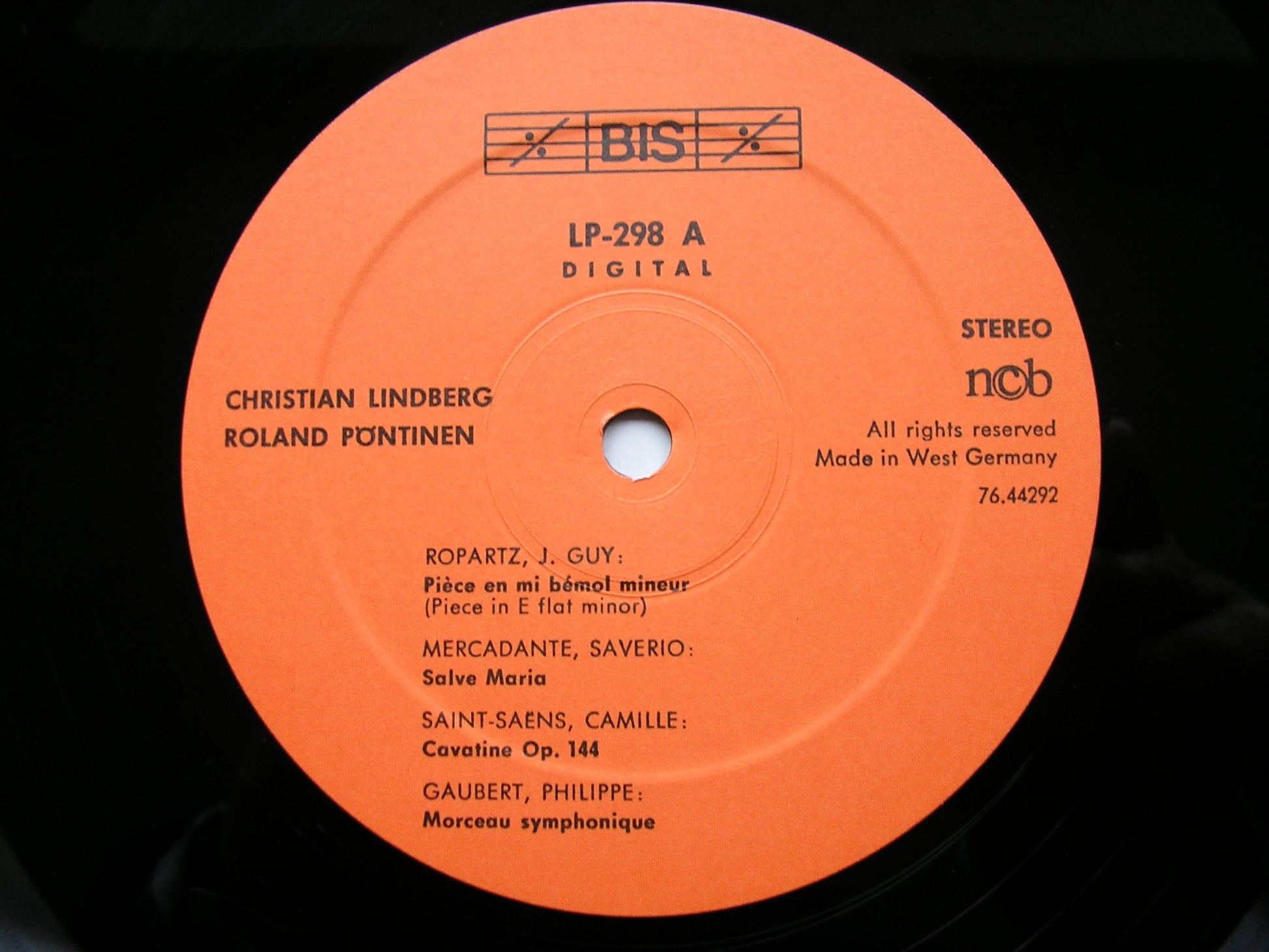 BIS LP 298  ALFVEN: HERDSMAIDEN'S DANCE / WEBER: ROMANCE / JONGEN: ARIA & POLONAISE Op. 128 / STOJOWSKI: FANTAISIE / ROPARTZ: PIECE in E flat / GAUBERT: MORCEAU SYMPHONIQUE / SAINT-SAENS: CAVATINE Op. 144 / MERCADANTE: SALVE MARIA