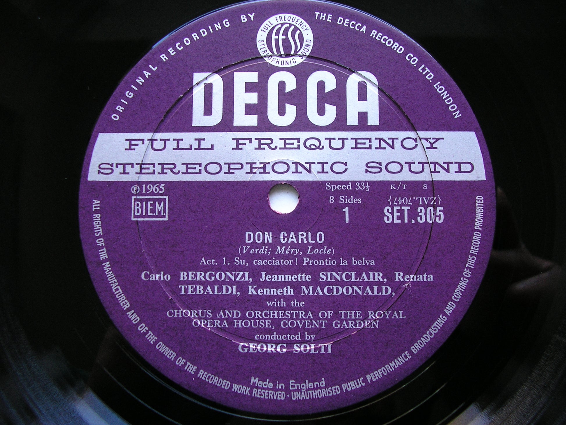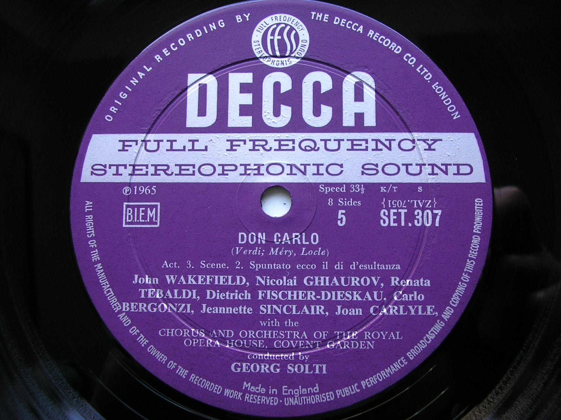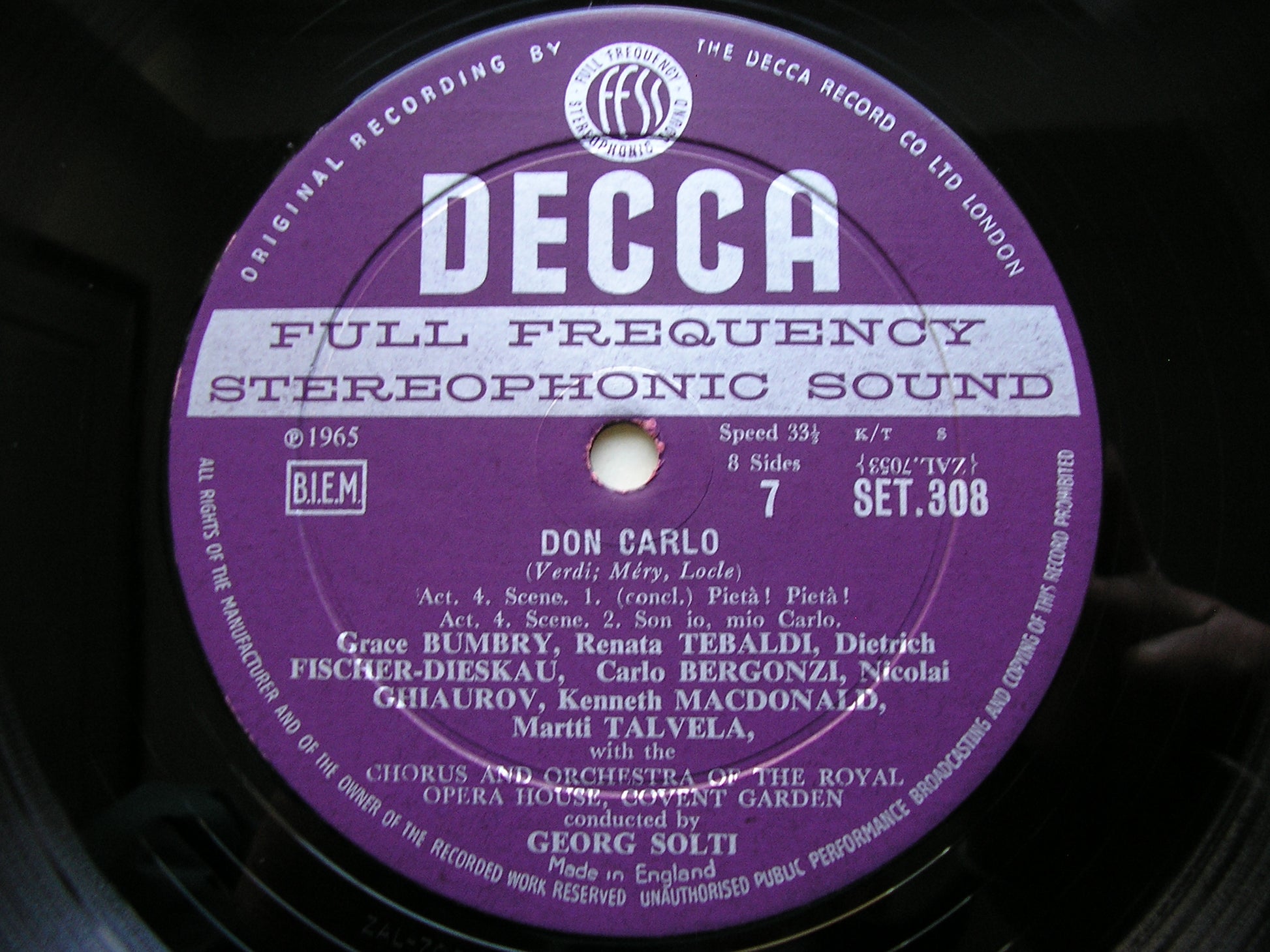 SET 305 - 8  VERDI: DON CARLO    CARLO BERGONZI / RENATA TEBALDI / DIETRICH FISCHER-DIESKAU / GRACE BUMBRY / NICOLAI GHIAUROV / ROYAL OPERA HOUSE COVENT GARDEN / GEORG SOLTI