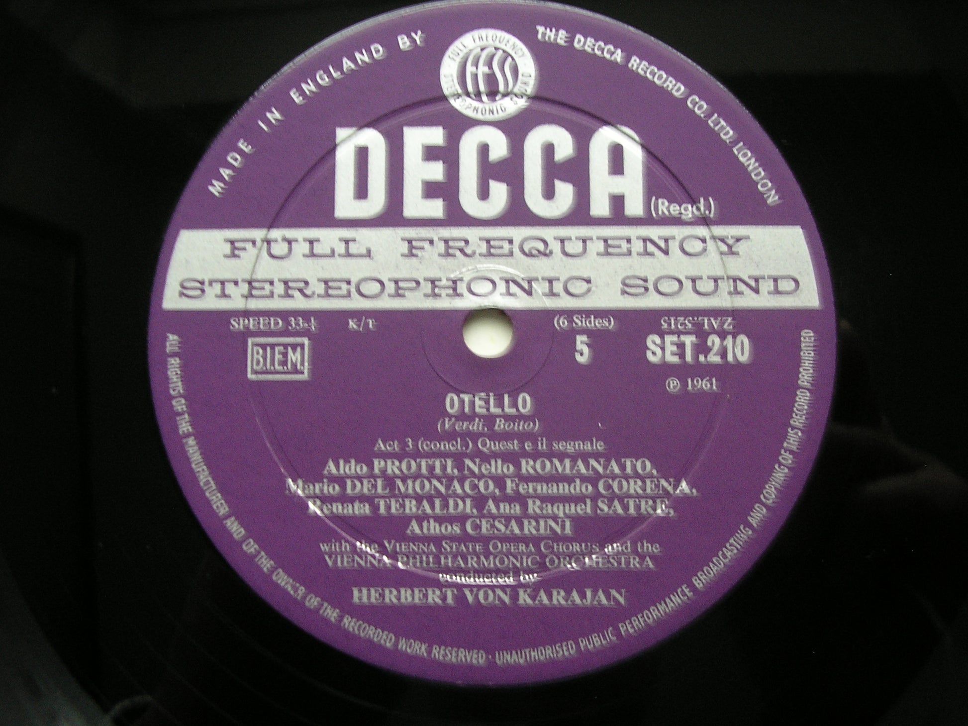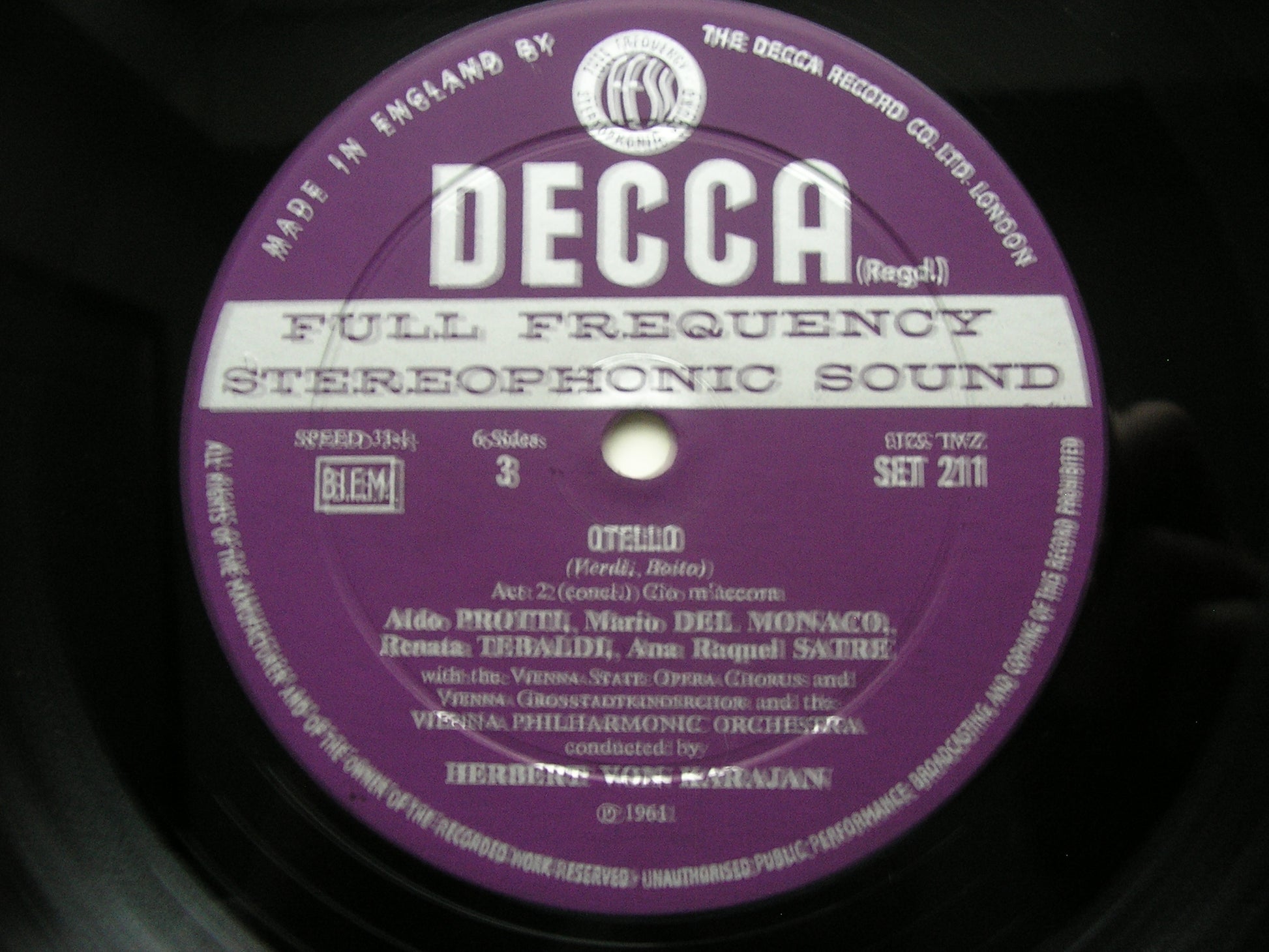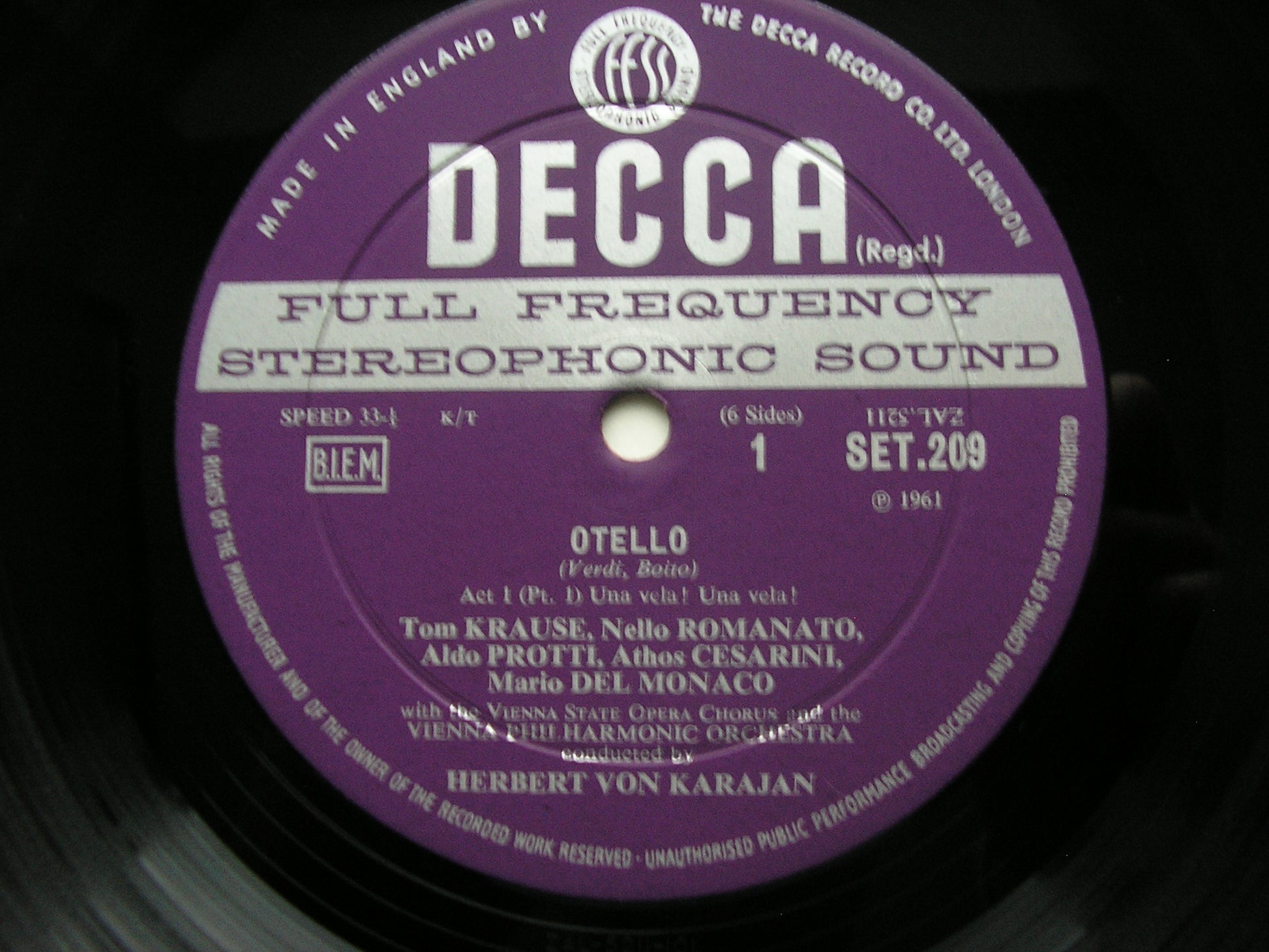 SET 209 - 211  VERDI: OTELLO    MARIO DEL MONACO / RENATA TEBALDI / ALDO PROTTI / VIENNA PHILHARMONIC ORCHESTRA / HERBERT VON KARAJAN
