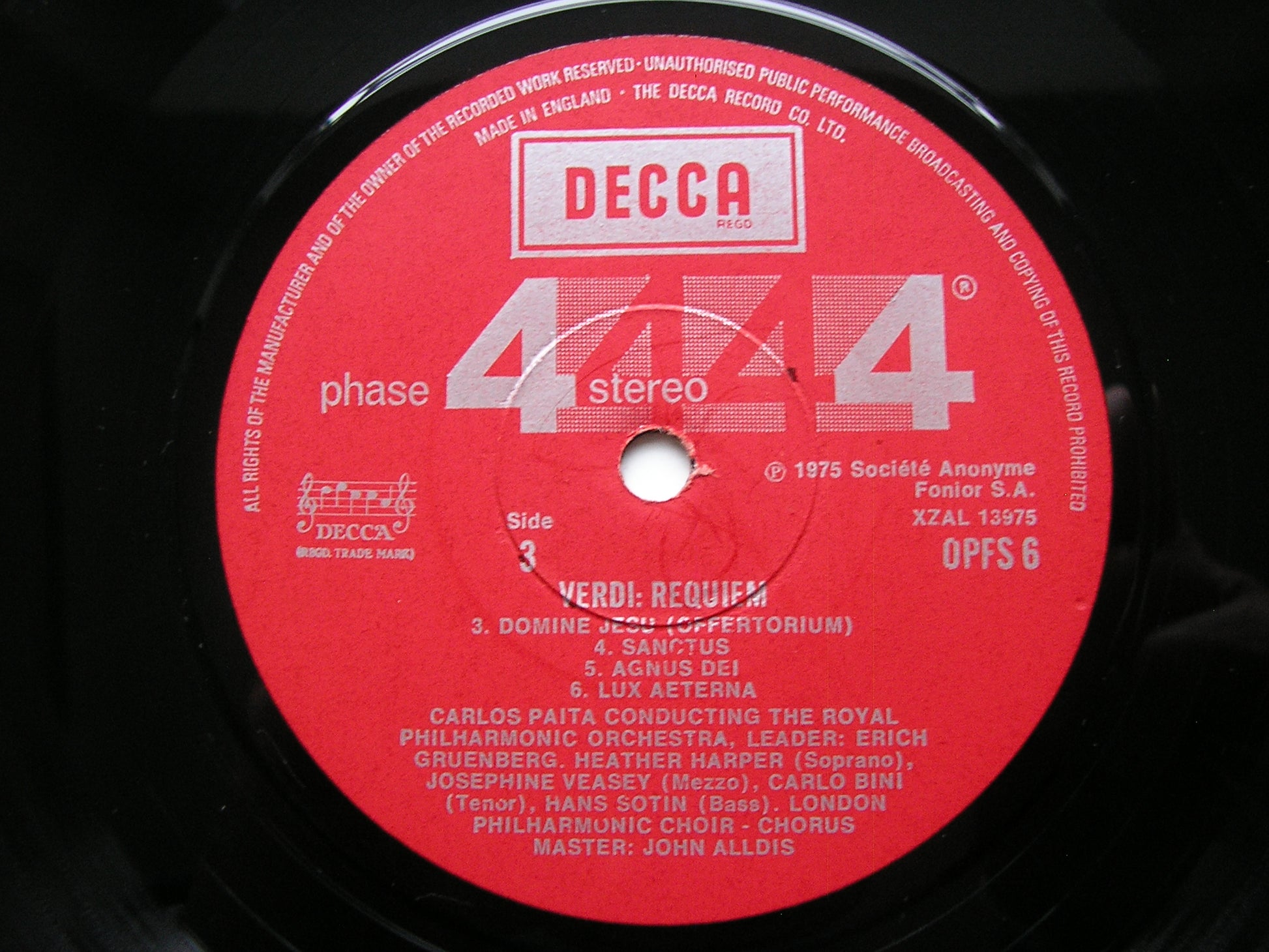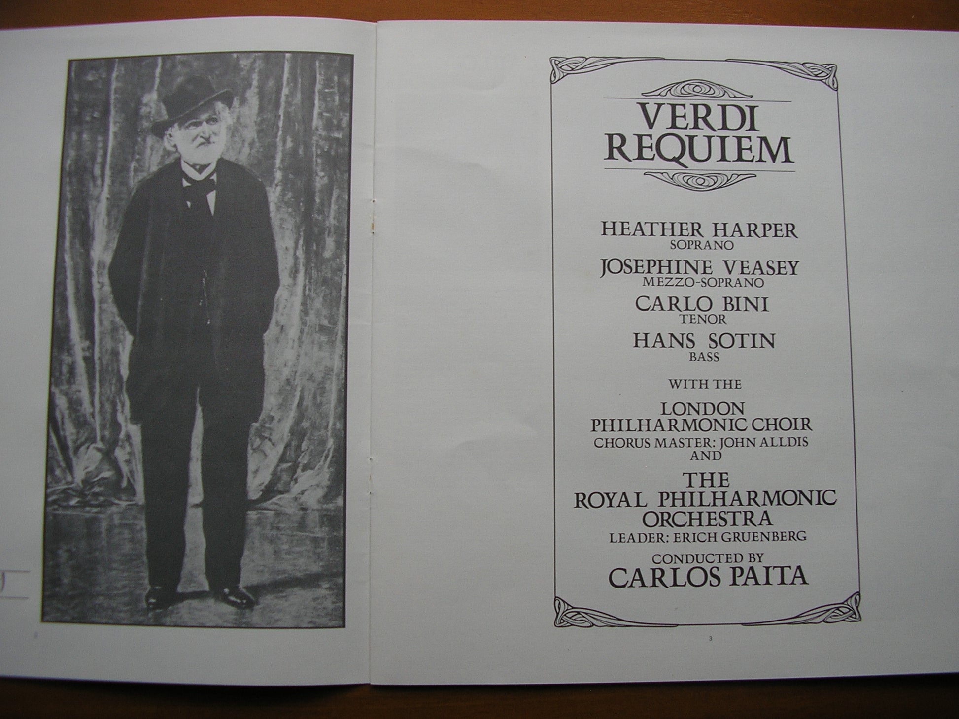 OPFS 5-6  VERDI: REQUIEM     HEATHER HARPER / JOSEPHINE VEASEY / CARLO BINI / HANS SOTIN / ROYAL PHILHARMONIC ORCHESTRA / CARLOS PAITA