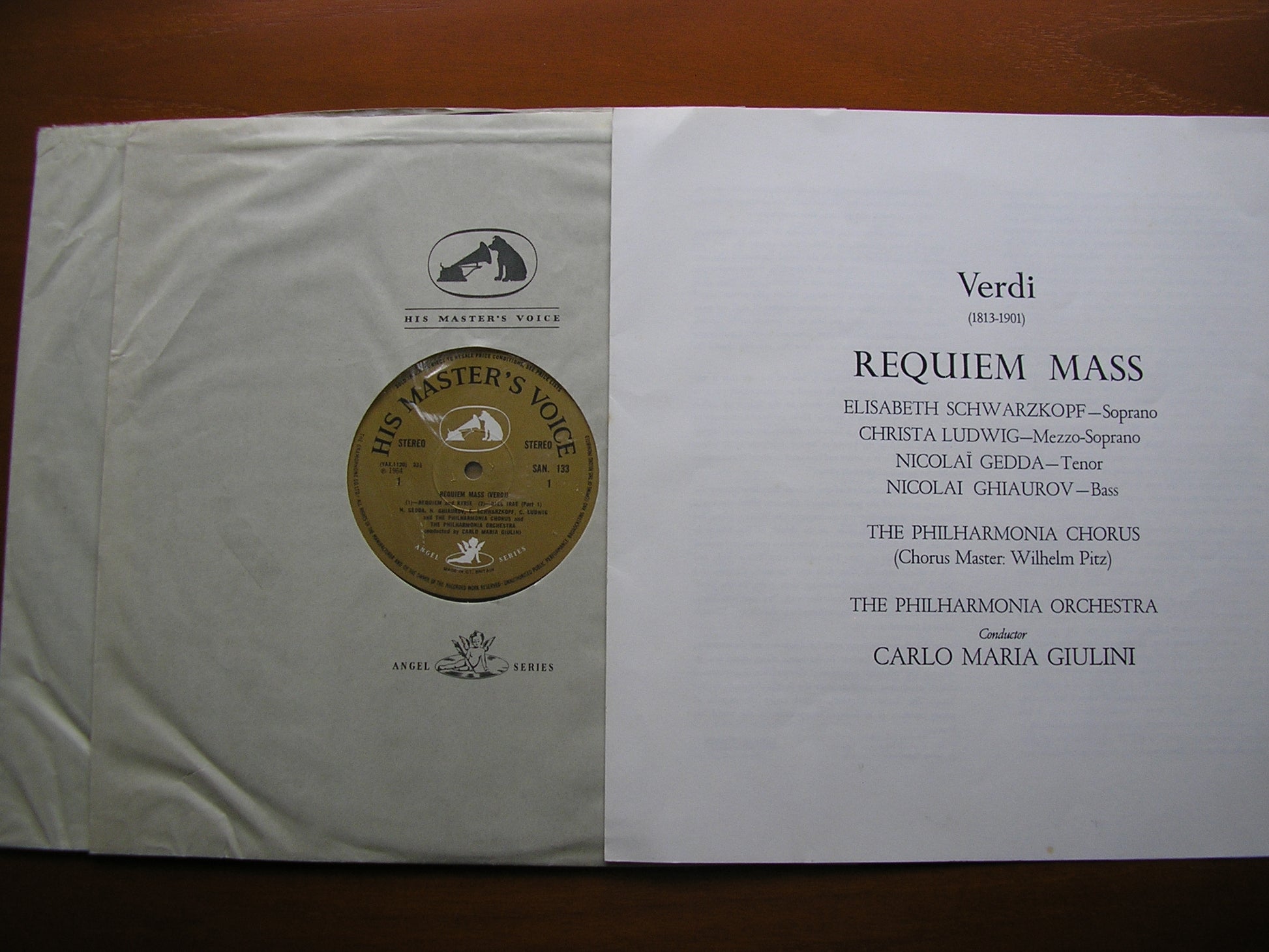 SAN 133 - 134  VERDI: REQUIEM   ELISABETH SCHWARZKOPF / NICOLAI GEDDA / CHRISTA LUDWIG / NICOLAI GHIAUROV / PHILHARMONIA ORCHESTRA / CARLO MARIA GIULINI
