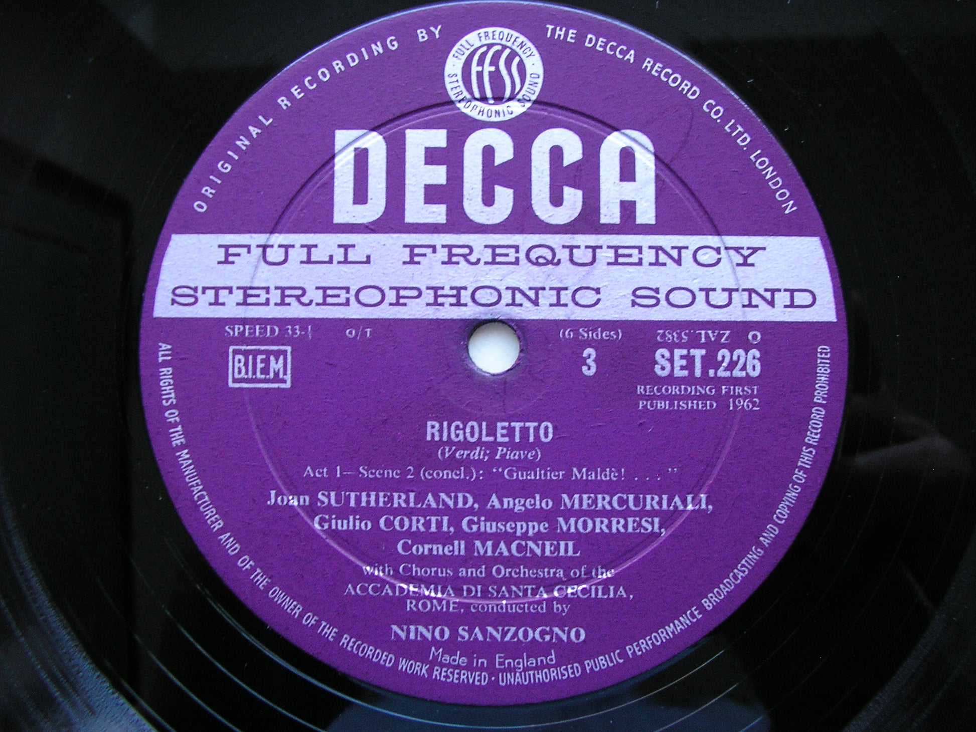 SET 234 - 236  VERDI: RIGOLETTO    CORNELL MACNEIL / JOAN SUTHERLAND / RENATO CIONI / CESARE SIEPI / ACCADEMICA DI SANTA CECILIA ROME / NINO SANZOGNO