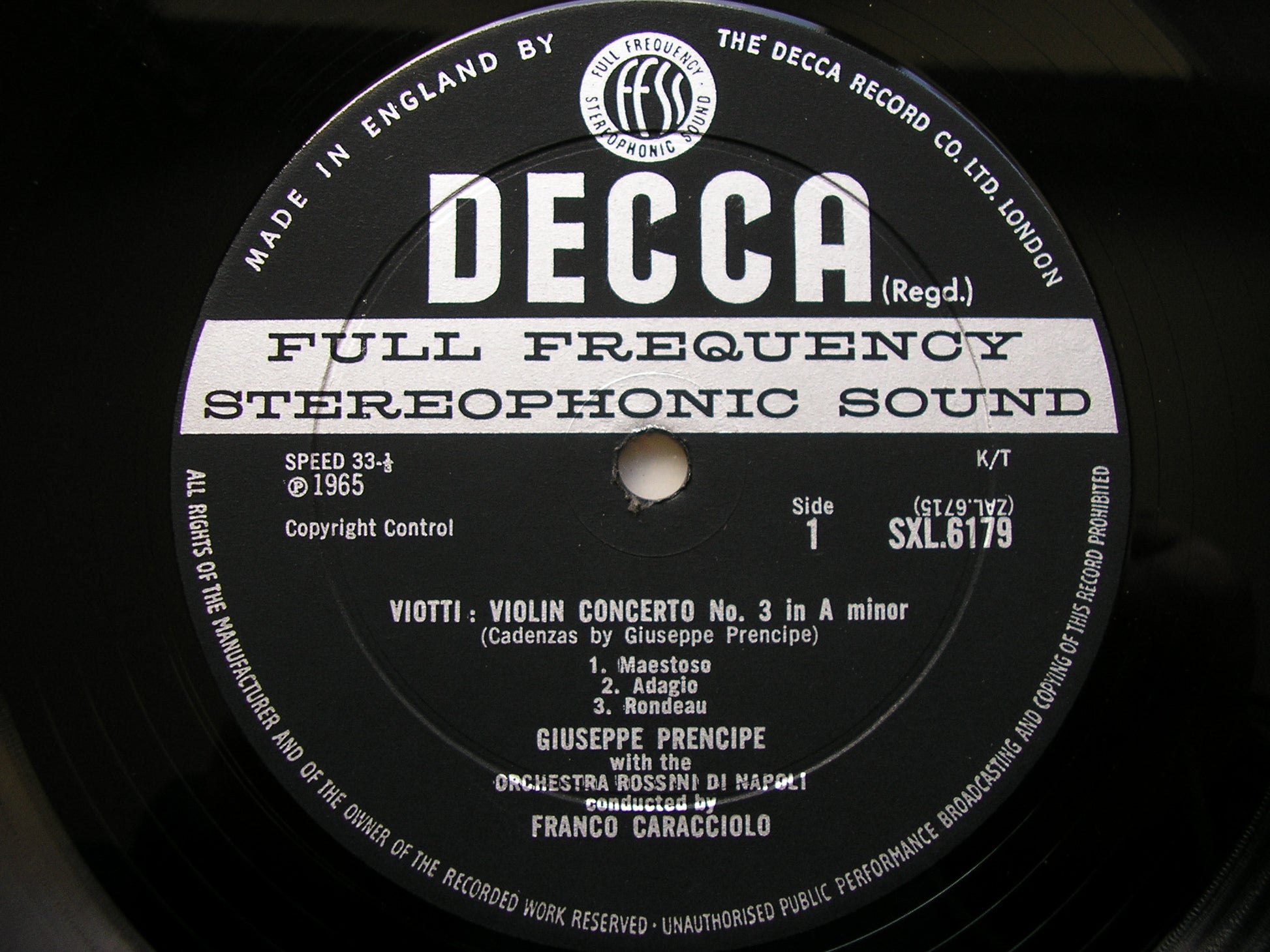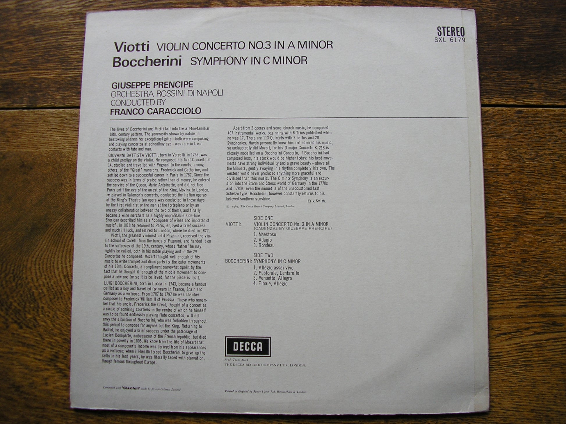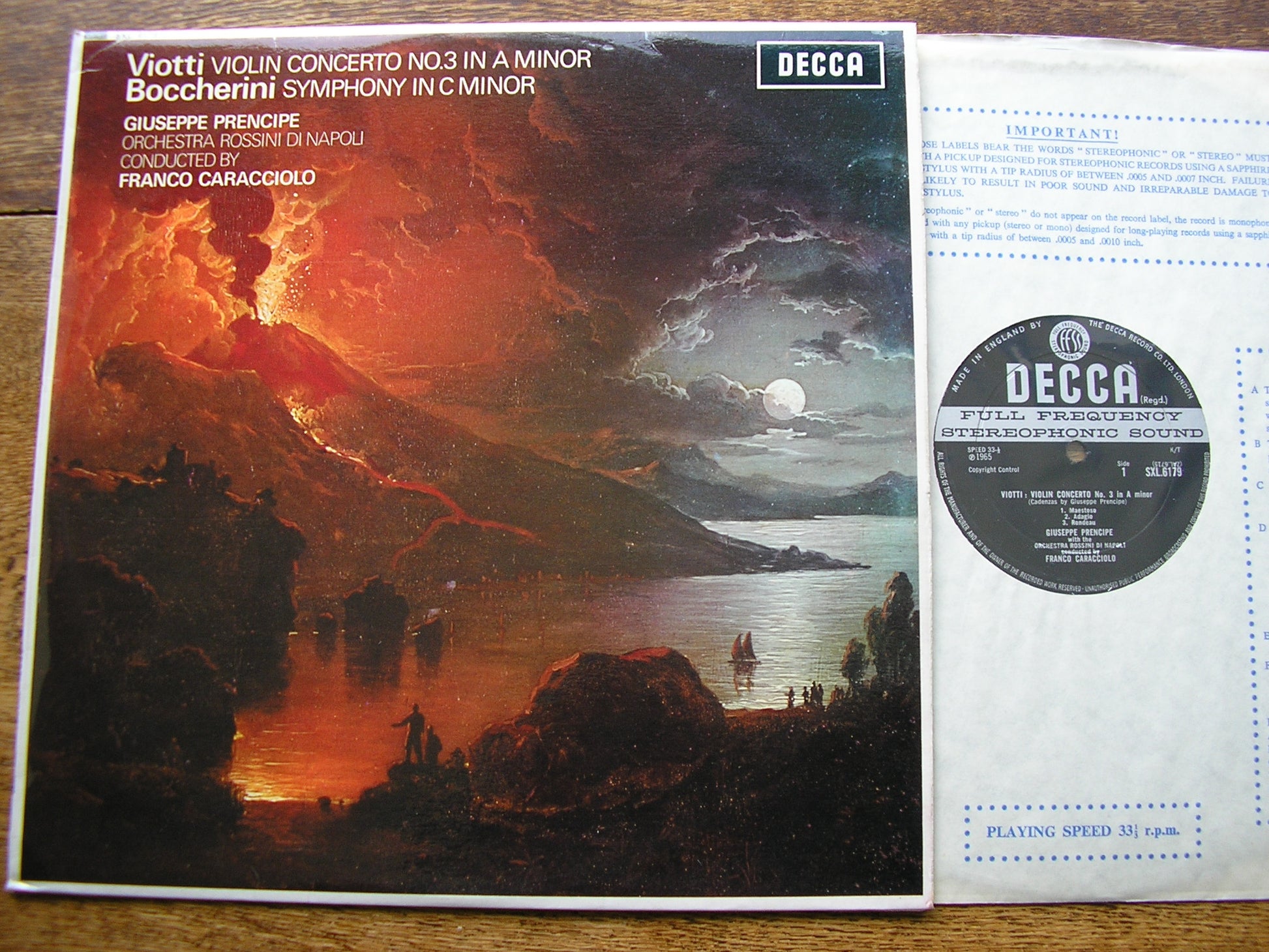 SXL 6179  VIOTTI: VIOLIN CONCERTO No. 3 in A / BOCCHERINI: SYMPHONY in C   GIUSEPPE PRENCIPE / ORCHESTRA ROSSINI DI NAPOLI / FRANCO CARACCIOLO