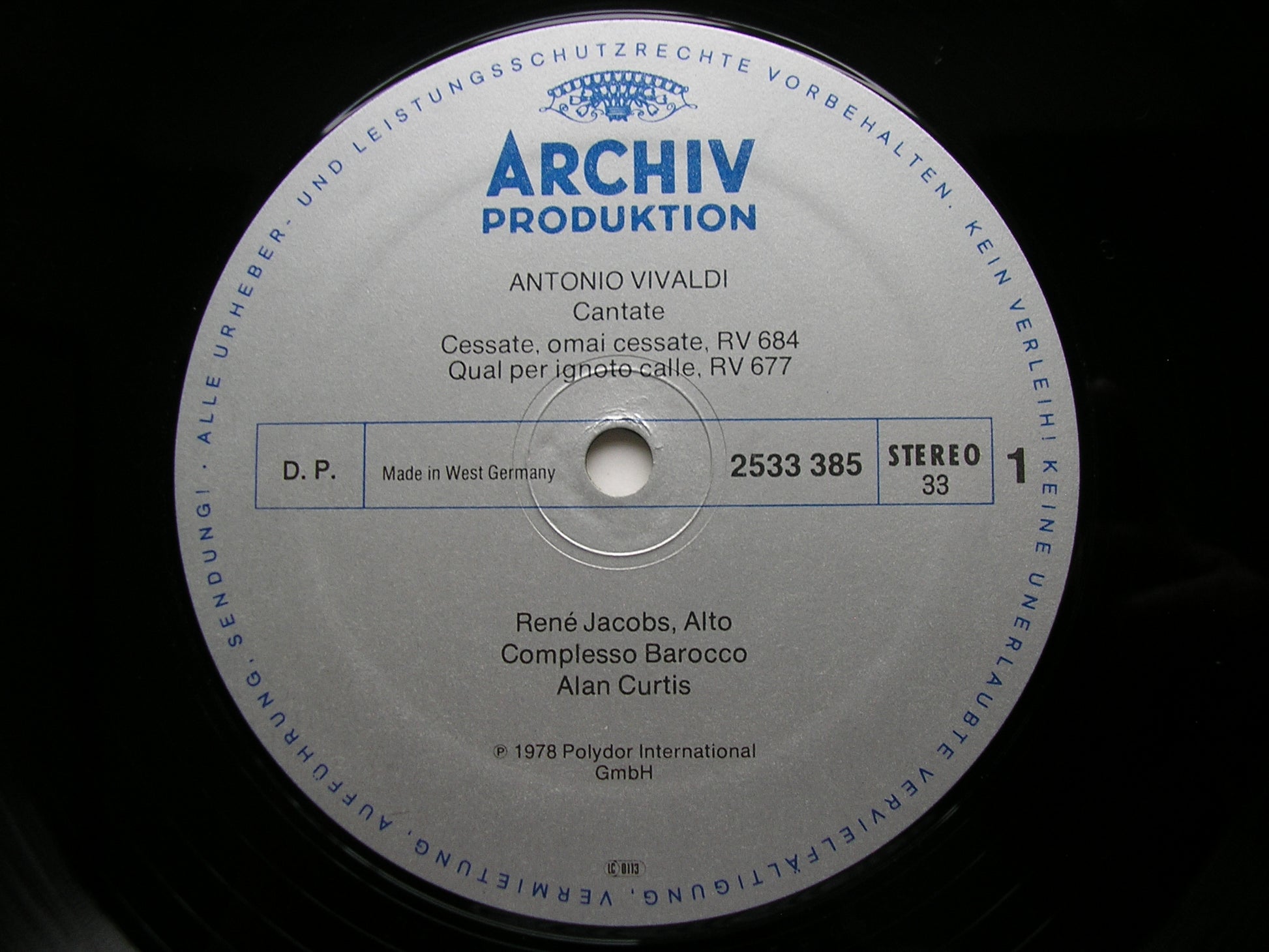 2533 385  VIVALDI: FOUR ITALIAN CANTATAS     RENE JACOBS / COMPLESSO BAROCCO / ALAN CURTIS