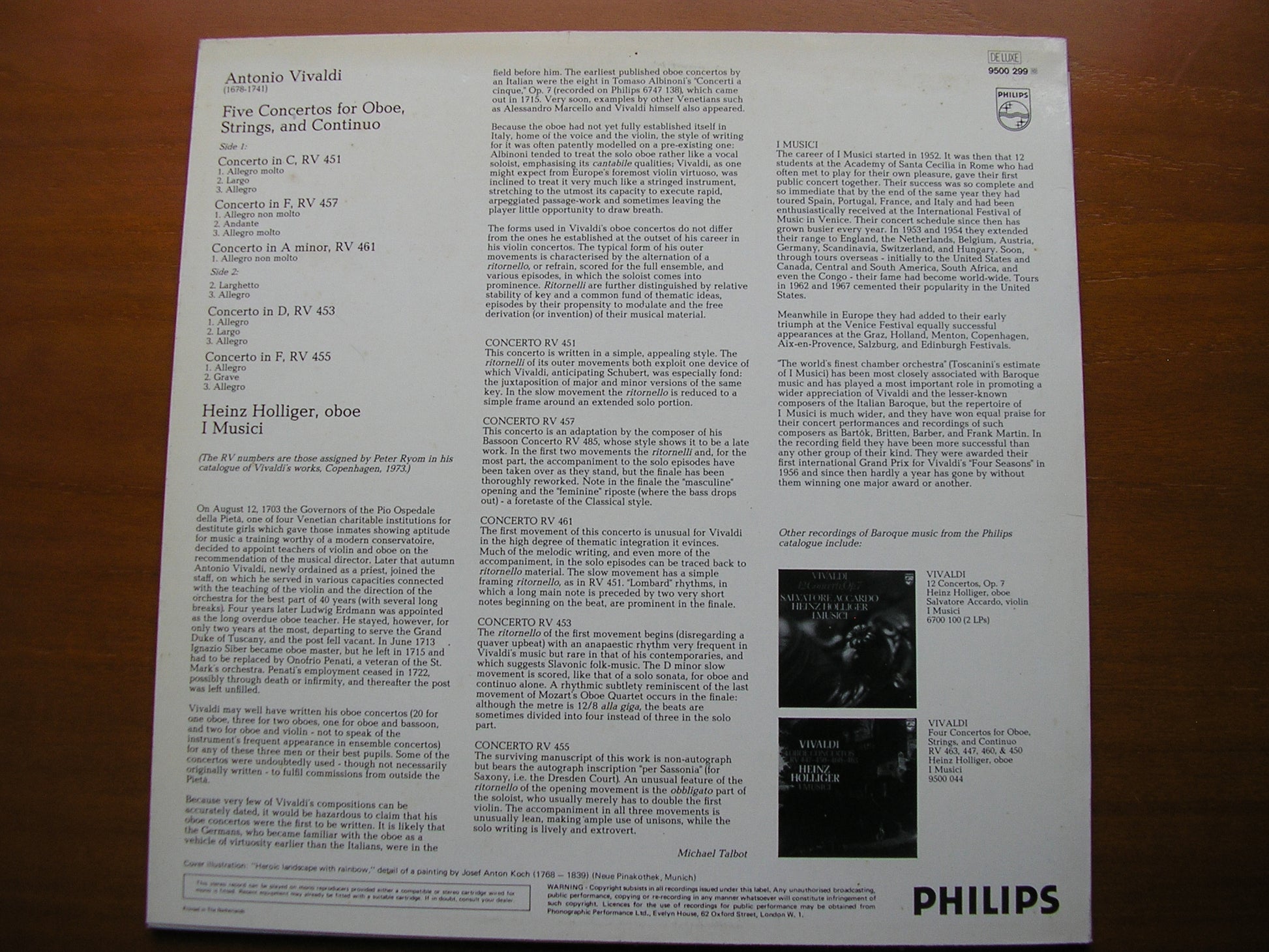 9500 299  VIVALDI: FIVE OBOE CONCERTOS     HEINZ HOLLIGER / I MUSICI