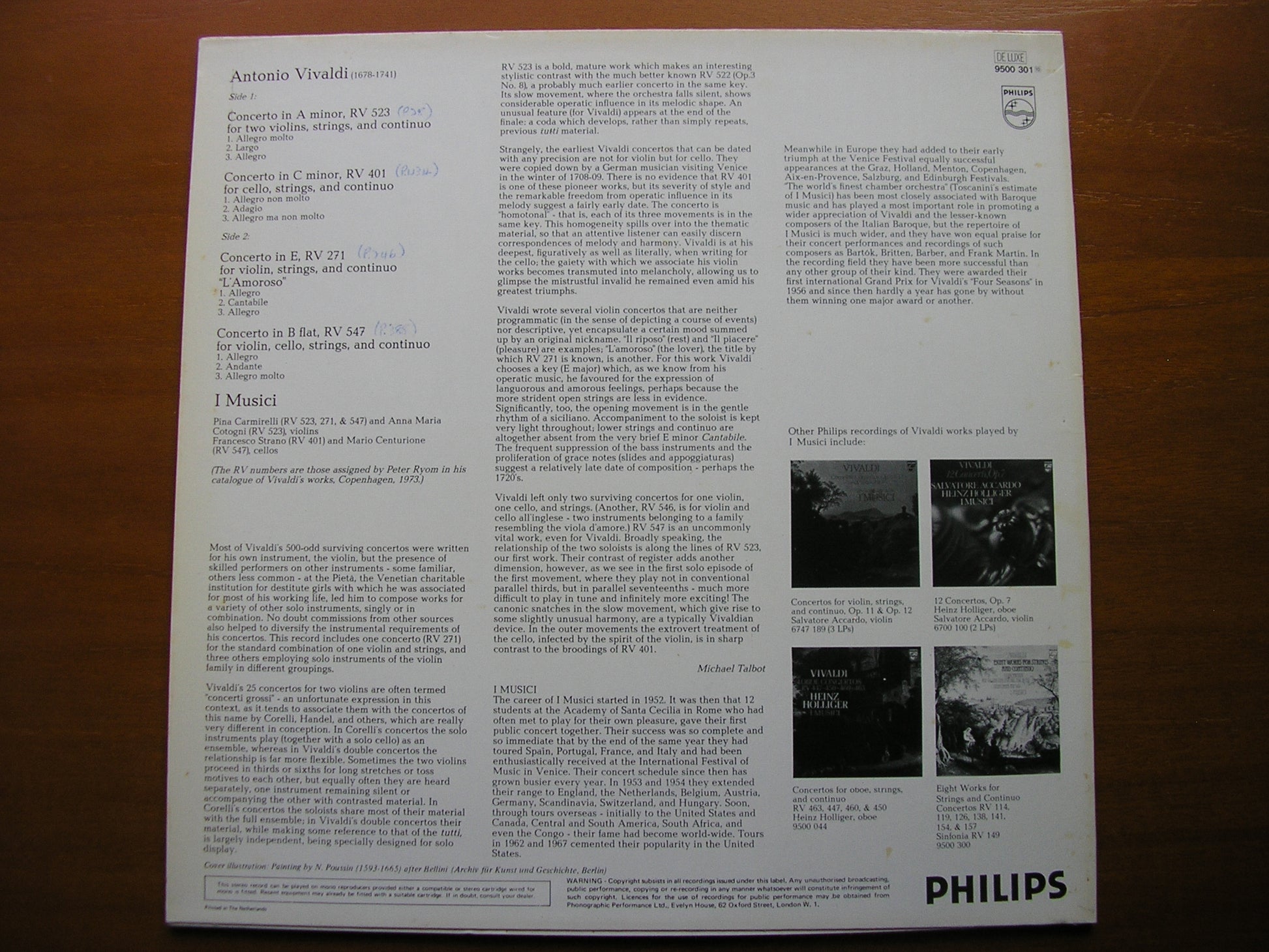 9500 301  VIVALDI: THREE VIOLIN CONCERTOS / CELLO CONCERTO        I MUSICI