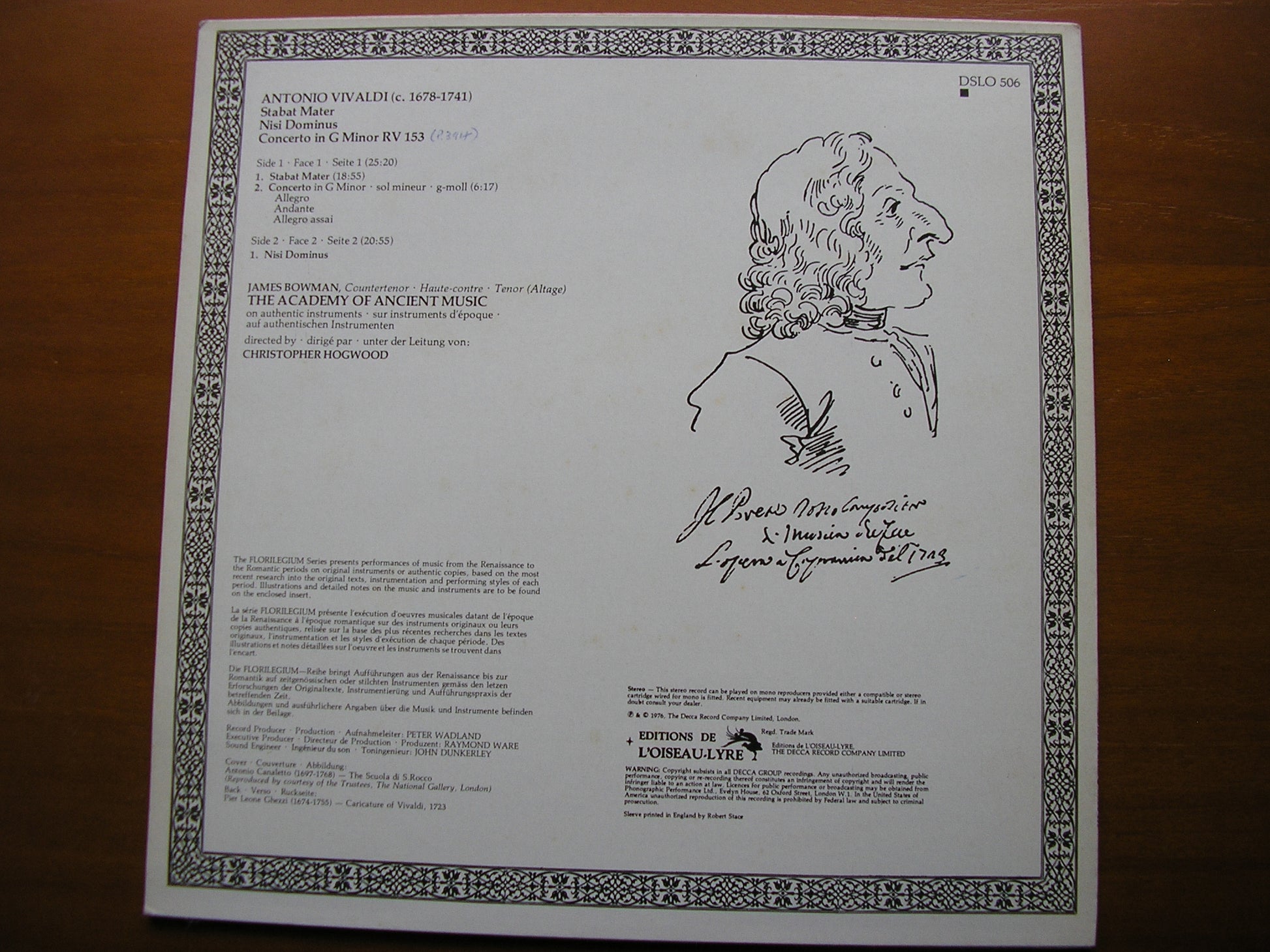 DSLO 506  VIVALDI: STABAT MATER / NISI DOMINUS / CONCERTO    JAMES BOWMAN / THE ENGLISH CONCERT / TREVOR PINNOCK