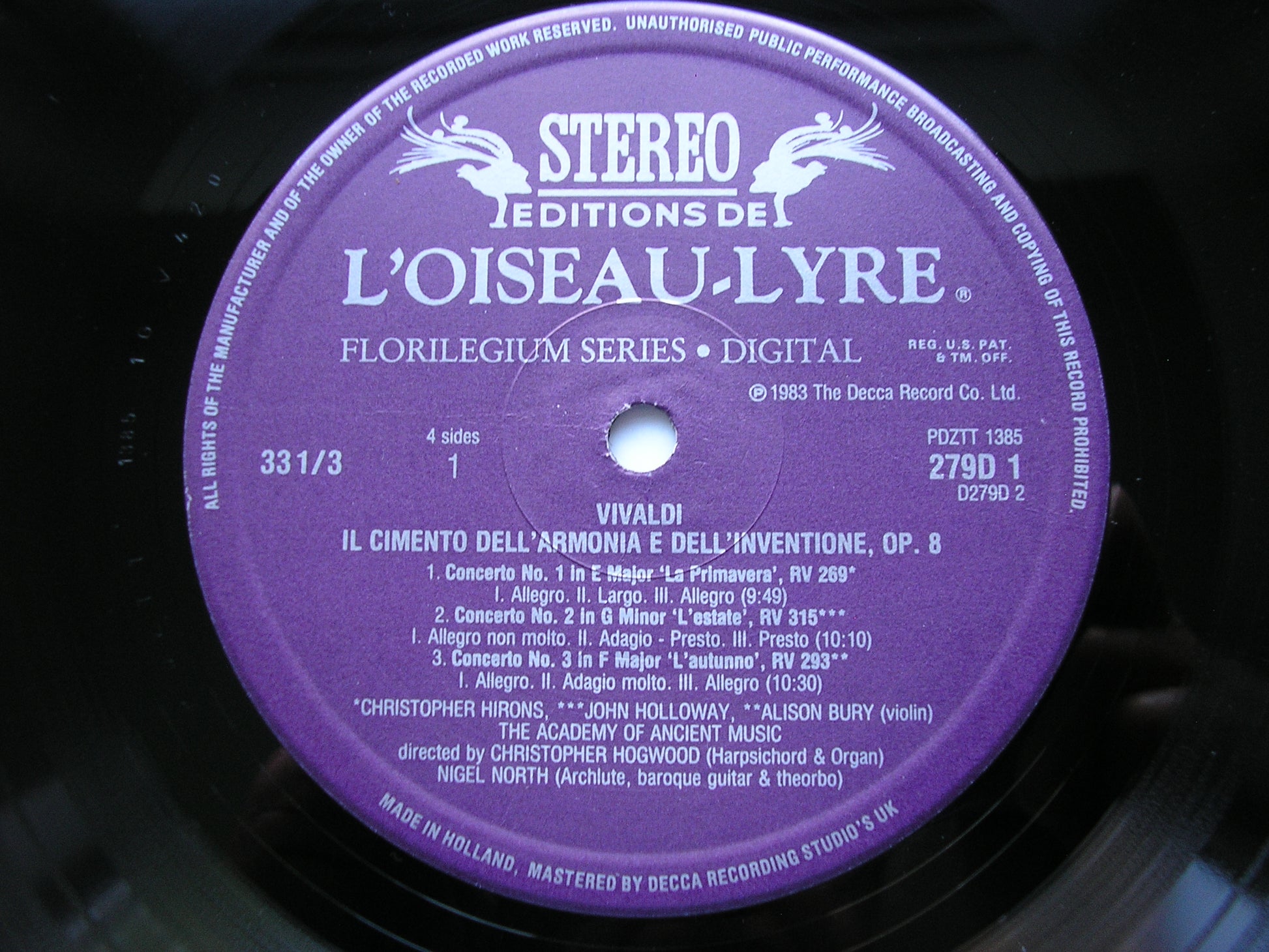 VIVALDI: THE CONTEST BETWEEN HARMONY & INVENTION Op. 8 HOGWOOD / THE ACADEMY OF ANCIENT MUSIC 2LP D279D 2