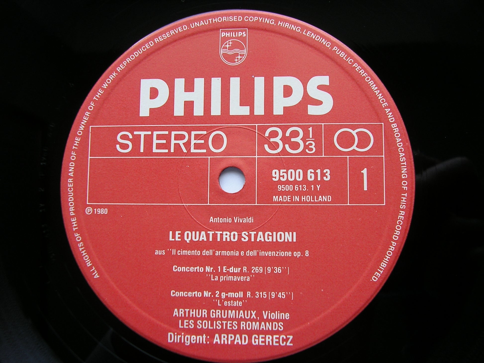 9500 613  VIVALDI: THE FOUR SEASONS     ARTHUR GRUMIAUX / LES SOLOISTES ROMANDS / ARPAD GERECZ