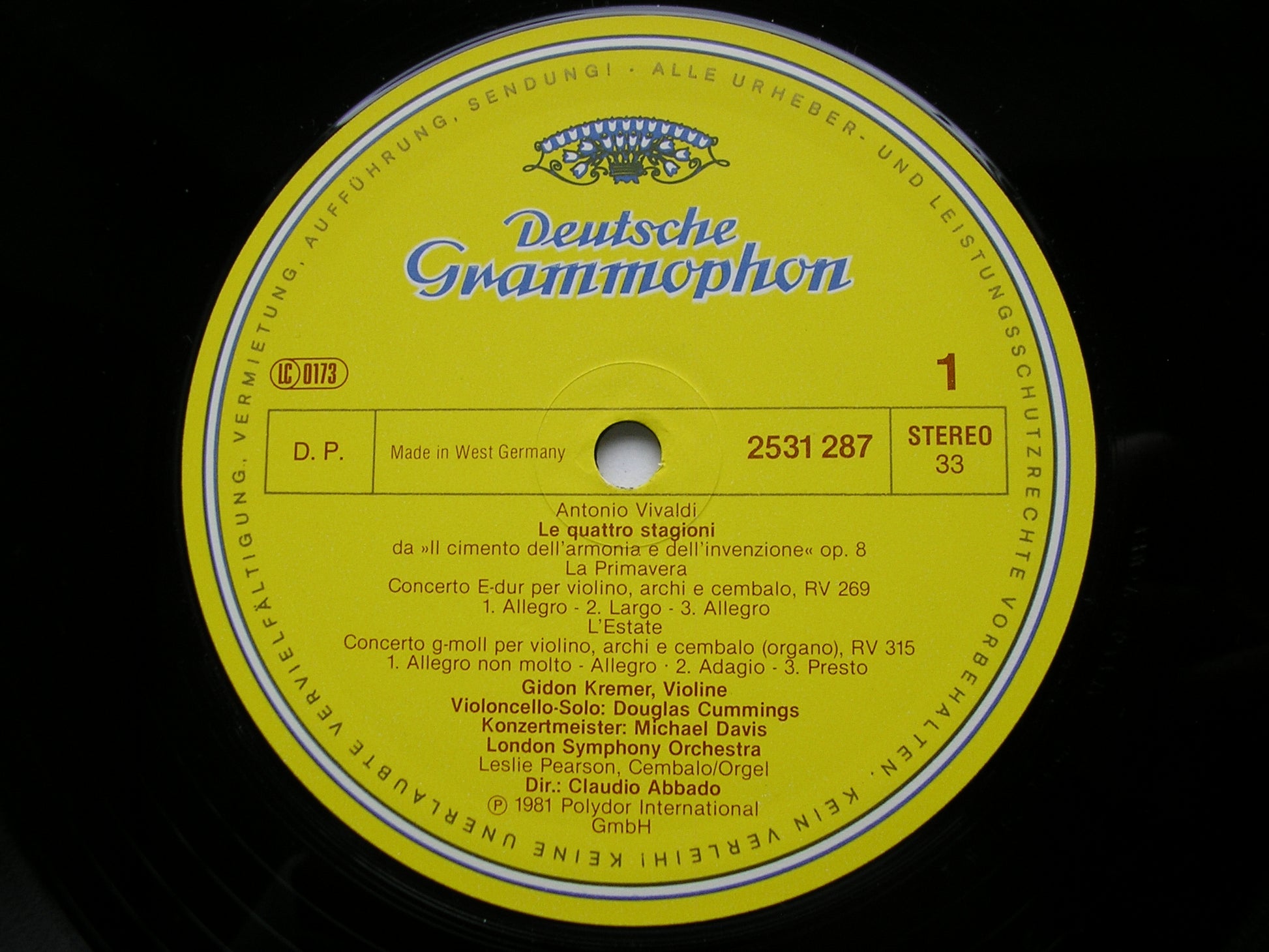 2531 287  VIVALDI: THE FOUR SEASONS       GIDON KREMER / LONDON SYMPHONY ORCHESTRA / CLAUDIO ABBADO