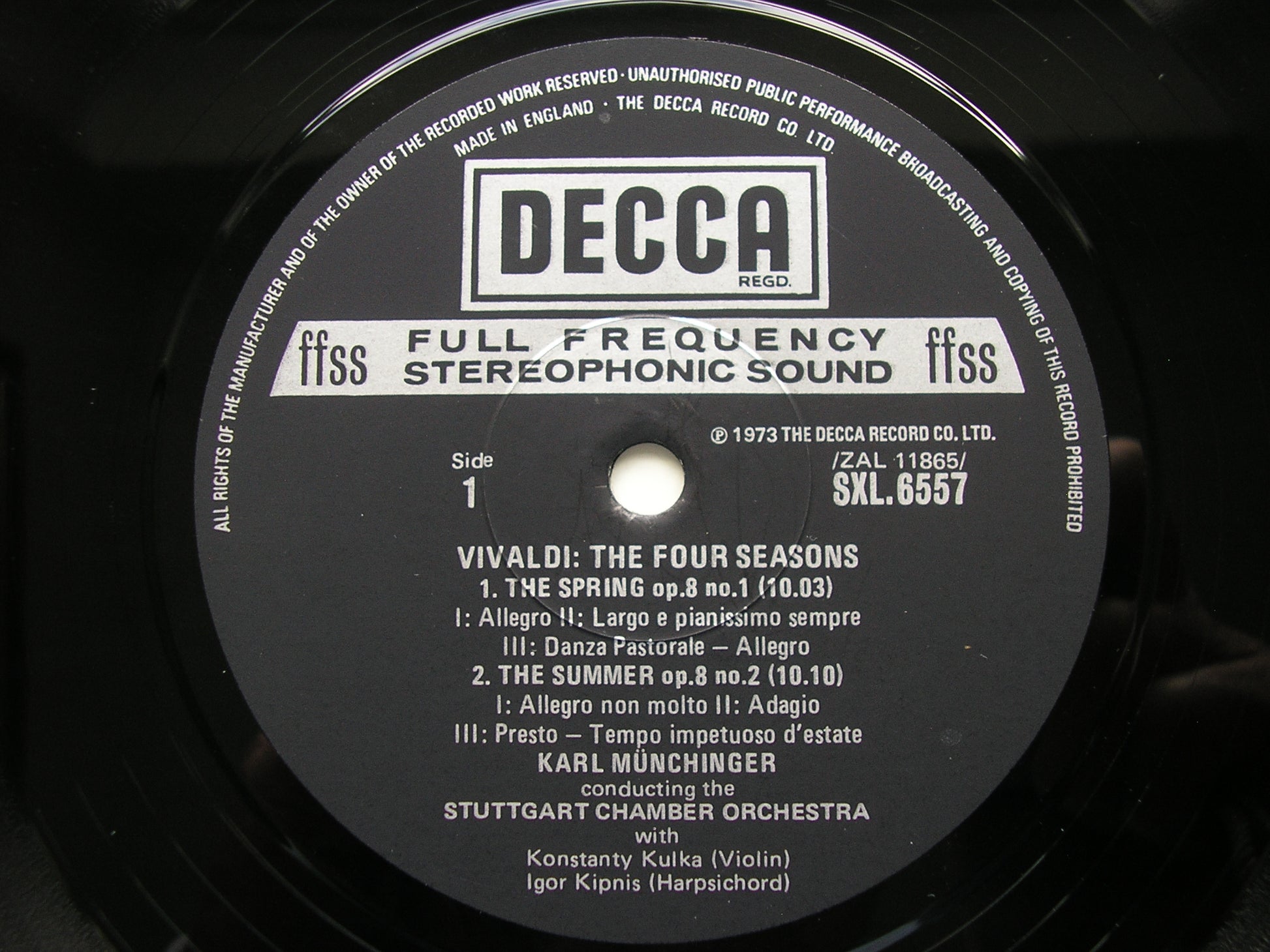 SXL 6557  VIVALDI: THE FOUR SEASONS     KONSTANTY KULKA / STUTTGART CHAMBER ORCHESTRA / KARL MUNCHINGER