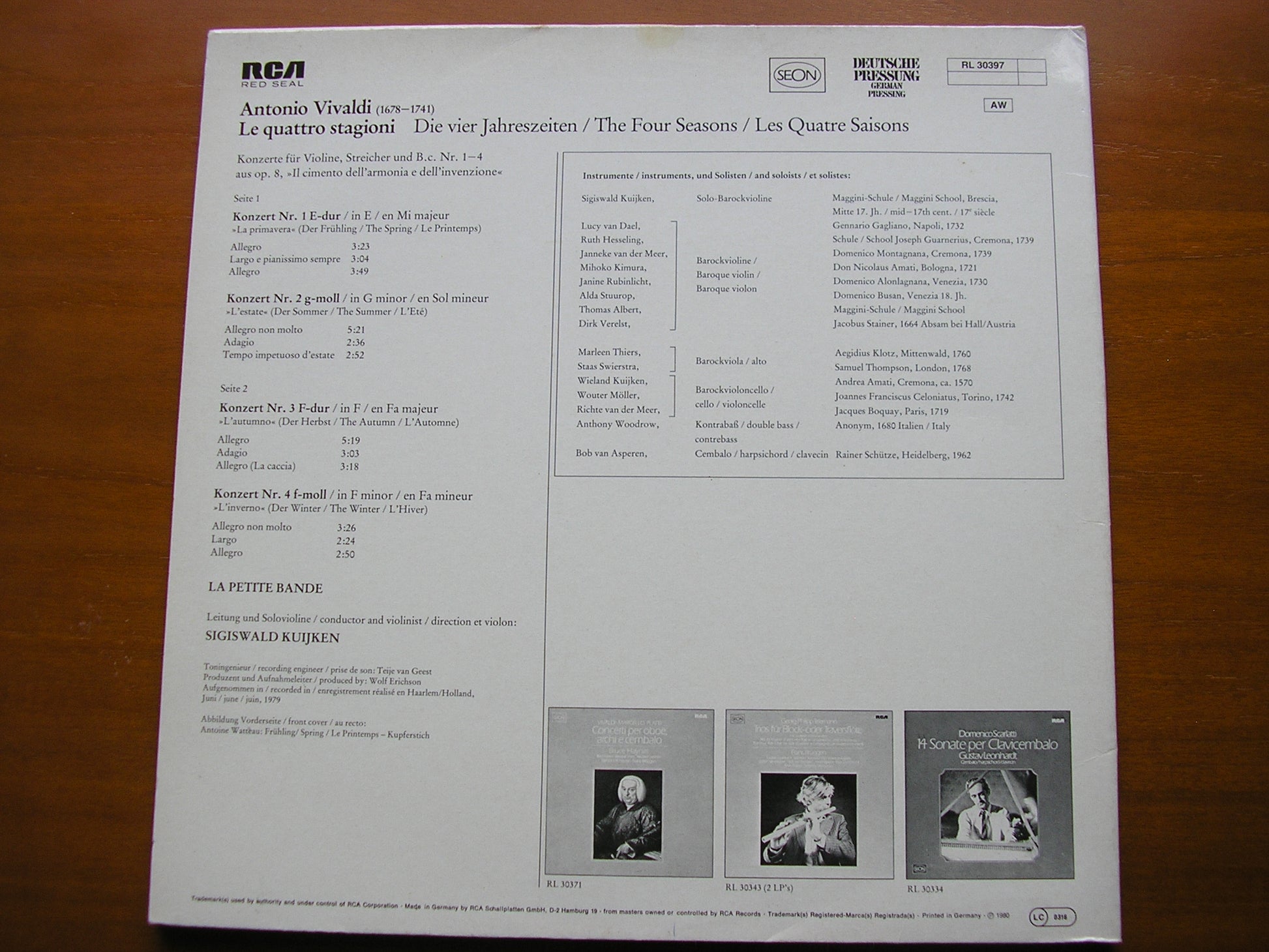 VIVALDI: THE FOUR SEASONS LA PETITE BANDE / KUIJKEN RL 30397