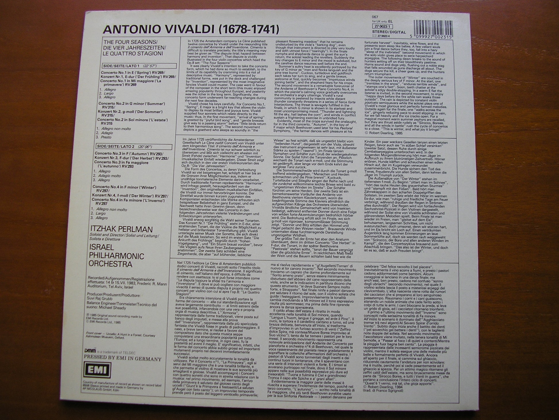 VIVALDI: THE FOUR SEASONS PERLMAN / ISRAEL PHILHARMONIC ORCHESTRA 27 0023