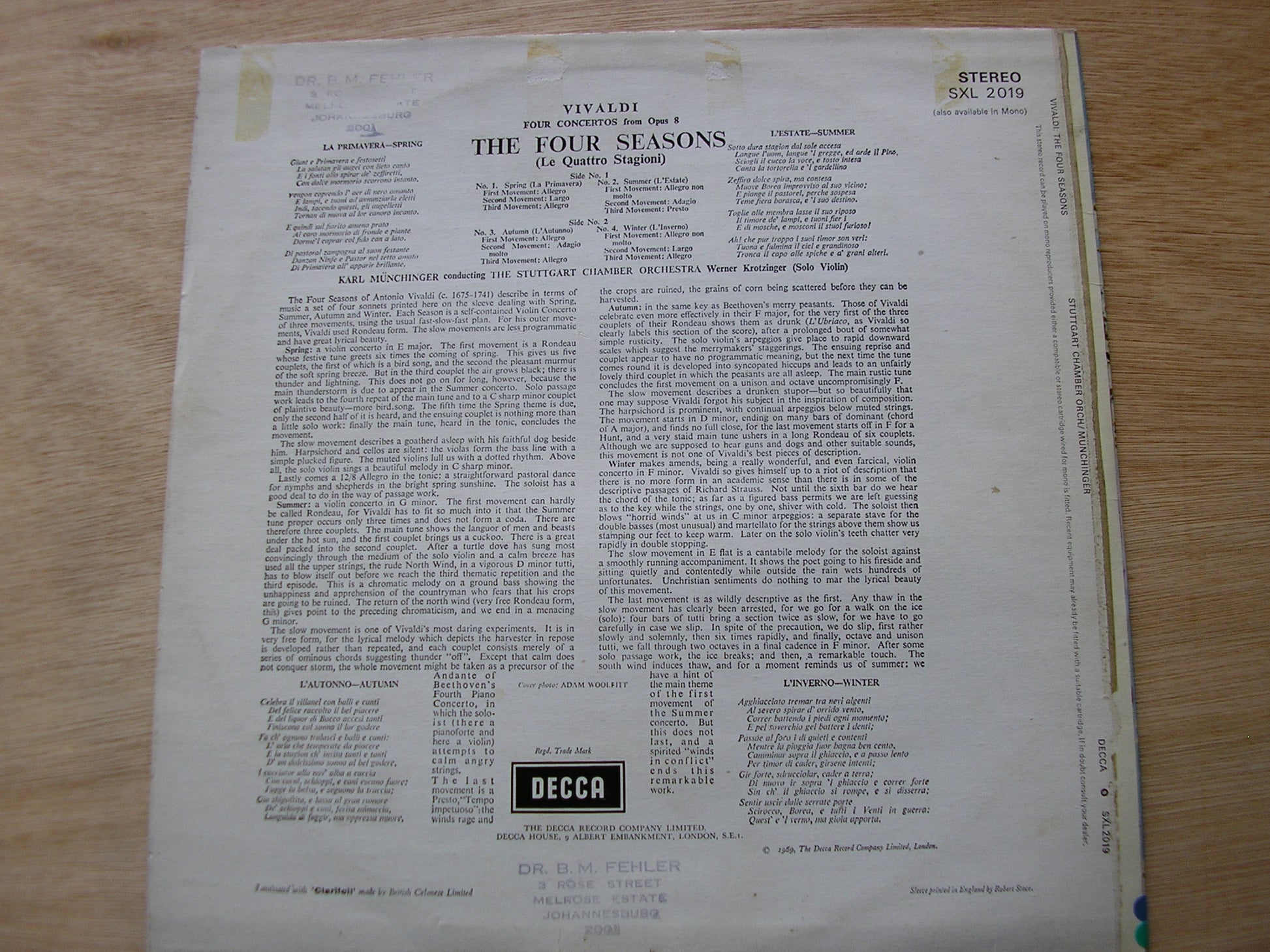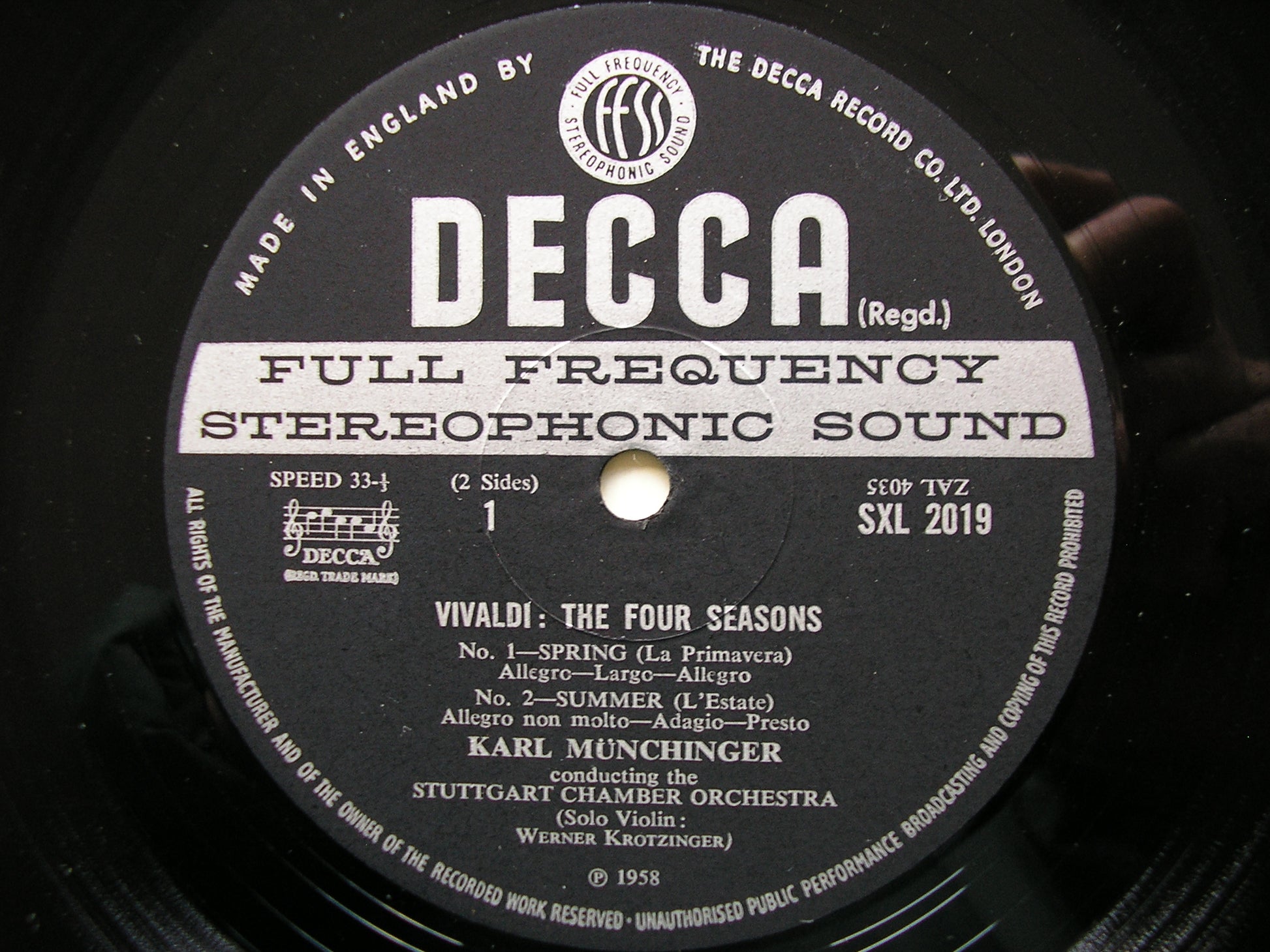 VIVALDI: THE FOUR SEASONS STUTTGART CHAMBER ORCHESTRA / KARL MUNCHINGER SXL 2019