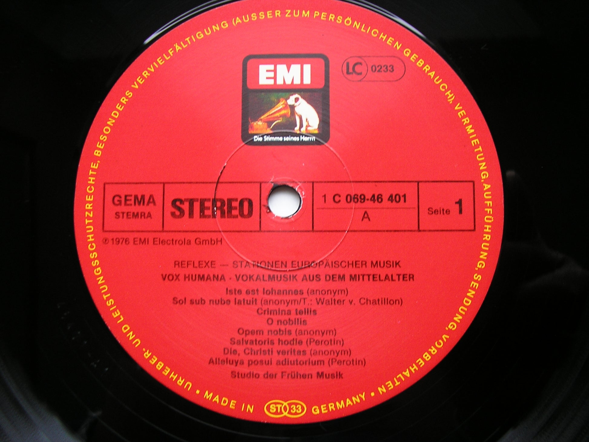 069-46401  VOX HUMANA: VOCAL MUSIC OF THE 12 & 13th CENTURIES: PEROTIN / PETRUS DE CRUCE / ARNAUT DANIEL / RAIMBAUT D'AURENGA / MEISTER ALEXANDER   STUDIO OF EARLY MUSIC / THOMAS BINKLEY