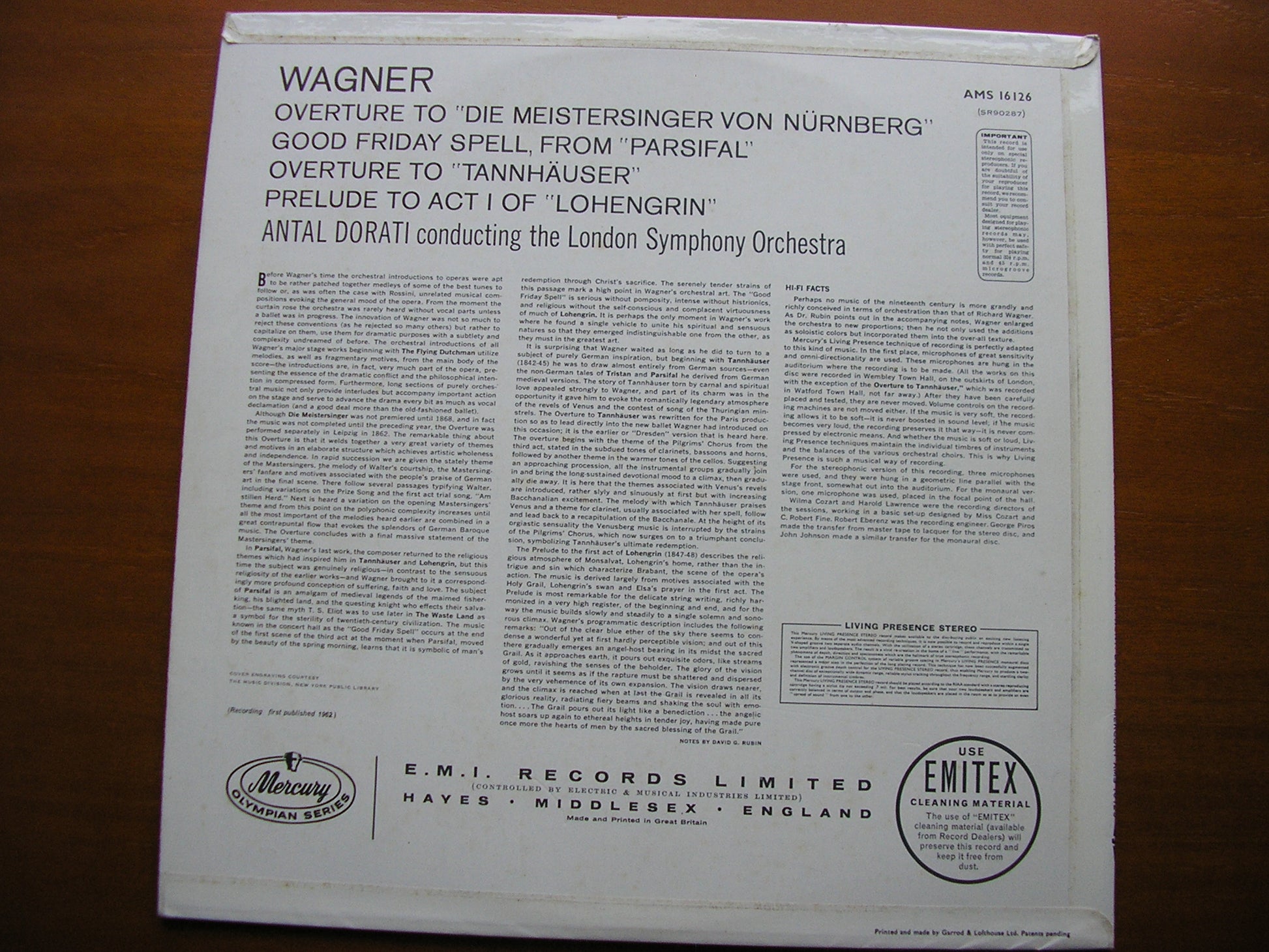 AMS 16126  WAGNER: ORCHESTRAL MUSIC from PARSIFAL / DIE MEISTERSINGER VON NURNBERG / LOHENGRIN     ANTAL DORATI / LONDON SYMPHONY ORCHESTRA
