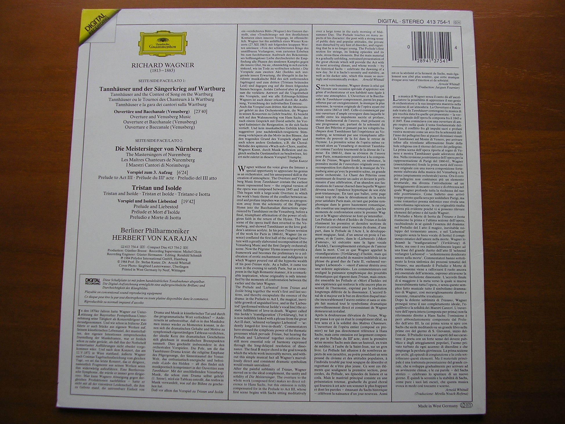 413 754  WAGNER: TANNHAUSER Overture & Venusberg Music / MASTERSINGERS Prelude to Act 3 / TRISTAN Prelude & Liebestod       HERBERT VON KARAJAN / BERLIN PHILHARMONIC ORCHESTRA