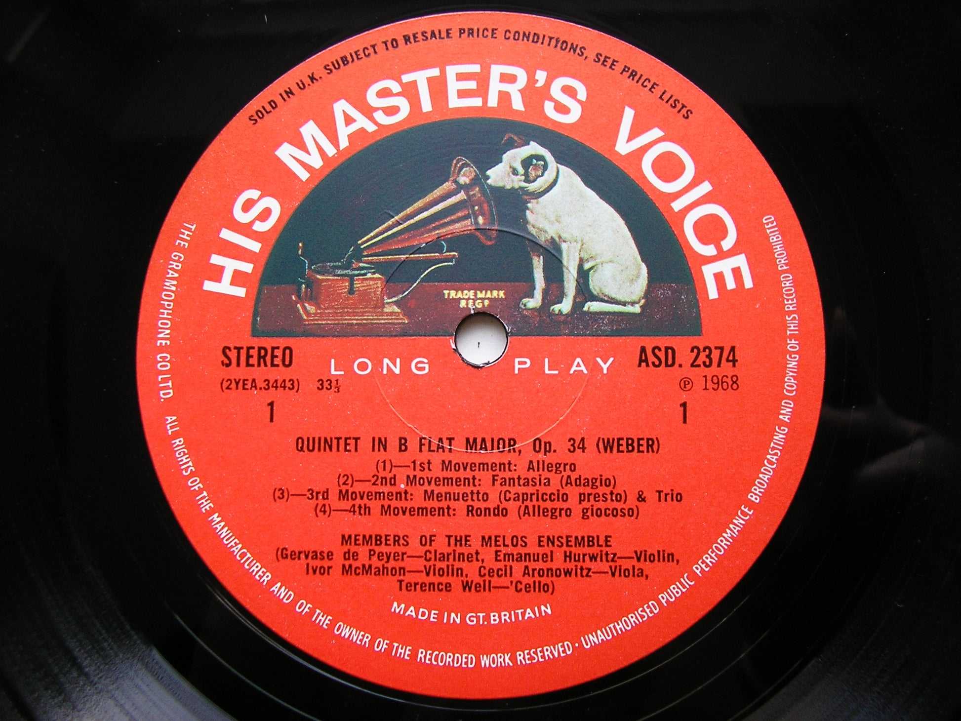 ASD 2374  WEBER: CLARINET QUINTET / SCHUMANN: FANTASY PIECES Op. 73 / FAIRY TALES Op. 132     GERVASE DE PEYER / MELOS ENSEMBLE
