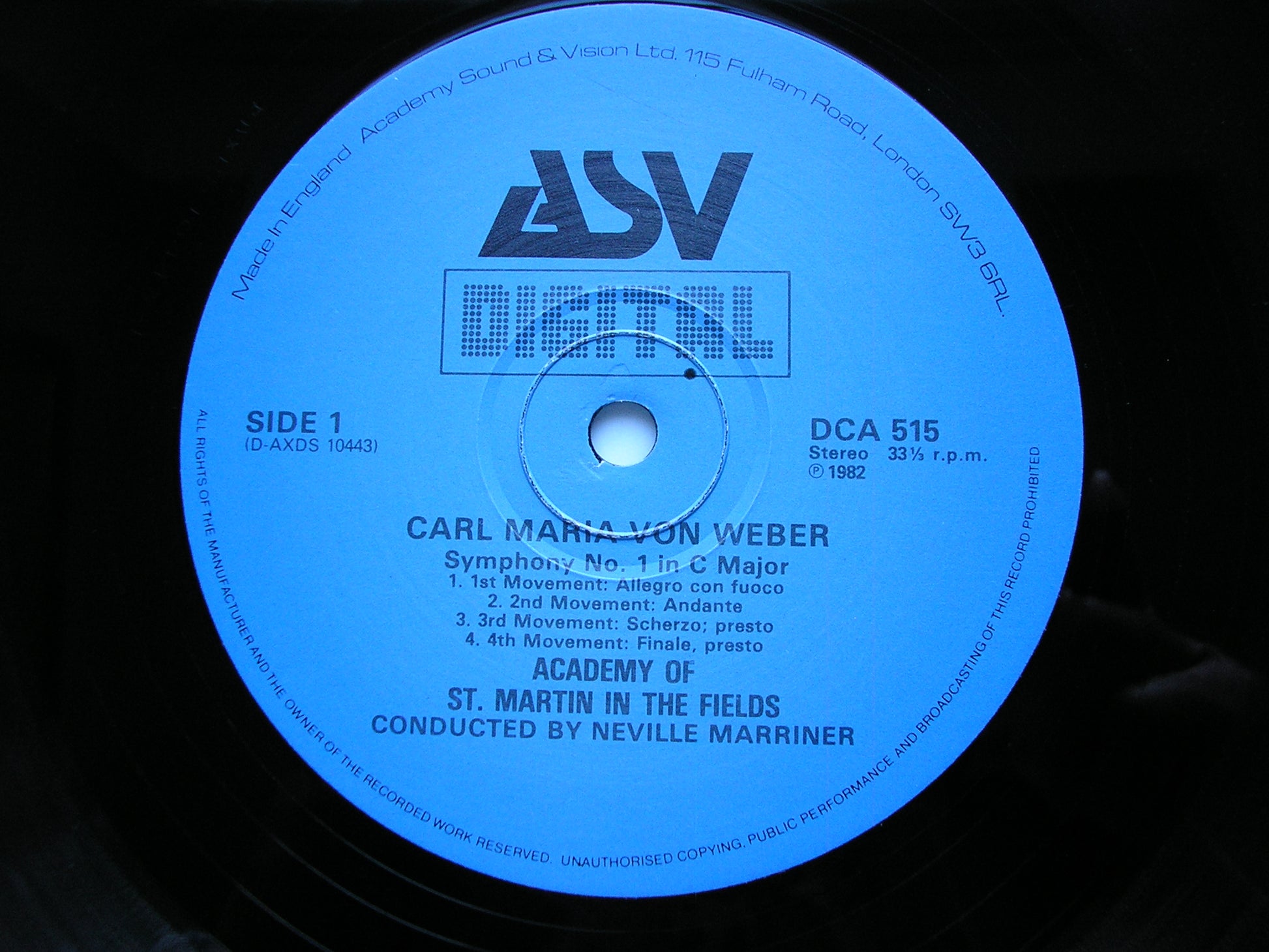 DCA 515  WEBER: SYMPHONIES Nos. 1 & 2    NEVILLE MARRINER / ACADEMY OF ST MARTINS IN THE FIELDS