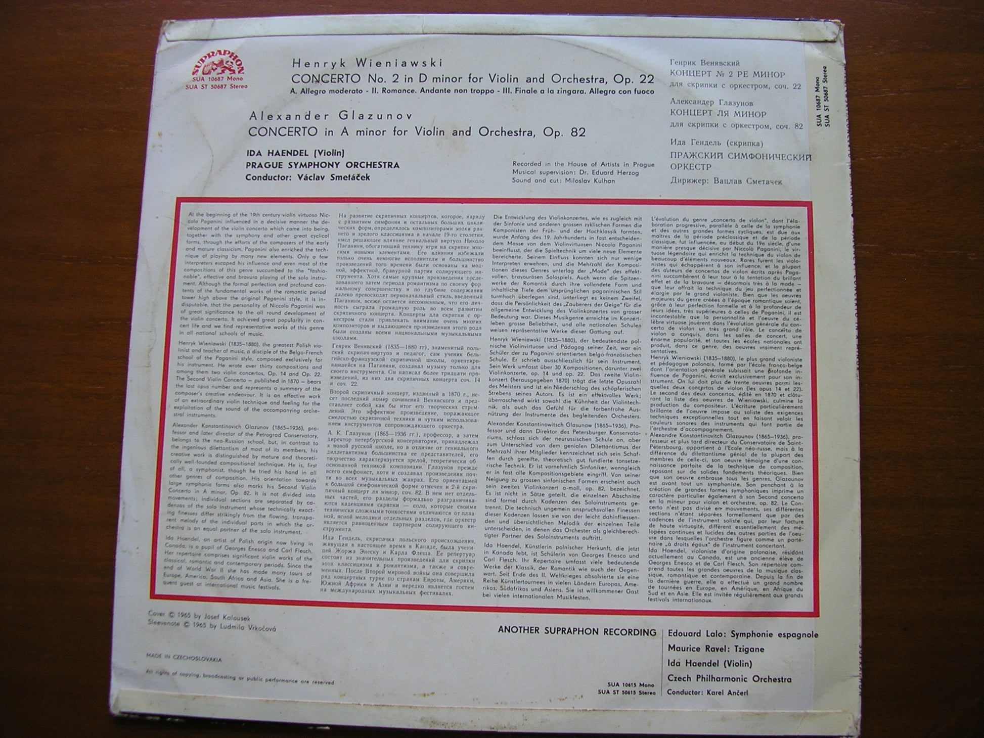 WIENIAWSKI: VIOLIN CONCERTO No. 2 / GLAVUNOV: VIOLIN CONCERTO IDA HAENDEL / PRAGUE SYMPHONY / SMETACEK SUA ST 50687