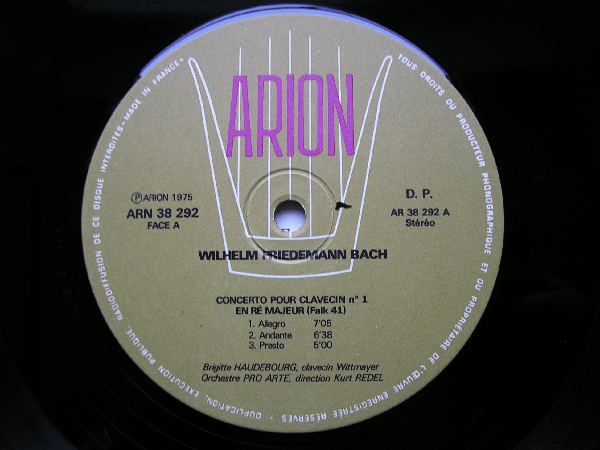 BACH, WILHELM FRIEDEMANN: HARPSICHORD CONCERTOS Nos. 1 & 3 HAUDEBOURG / PRO ARTE ORCHESTRA / REDEL ARN 38292