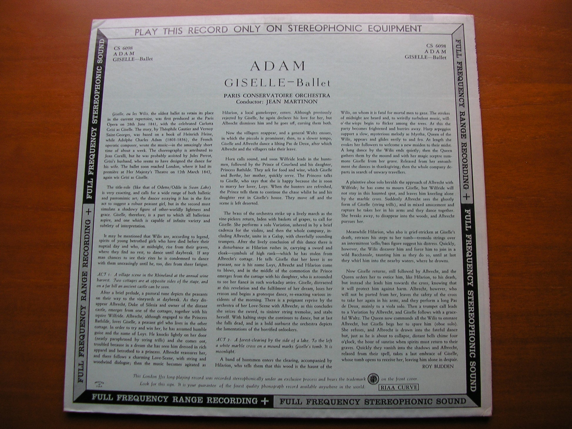 ADAM: GISELLE PARIS CONSERVATOIRE ORCHESTRA / MARTINON CS 6098